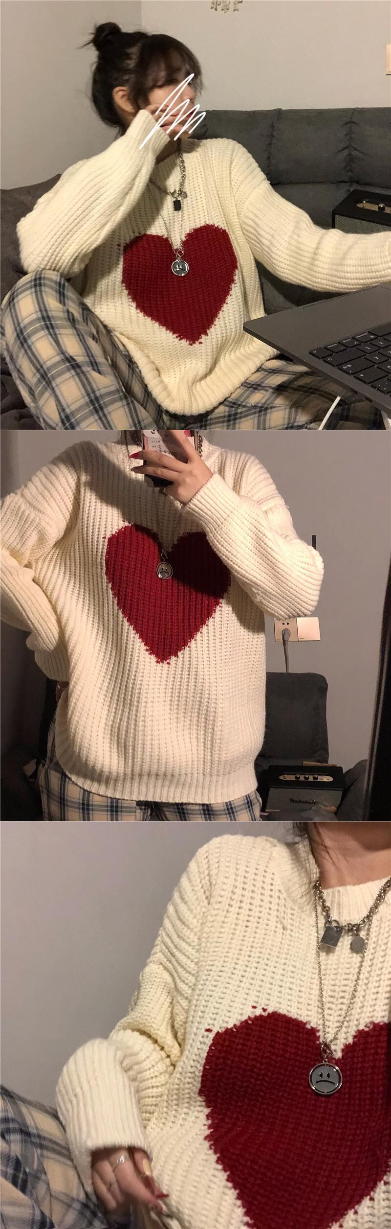 スプリングオータムプルオーバー ジャケット ルーズラウンドネックセーター ピンク 春物 秋物 Oネック Brother_is_Style40545906982