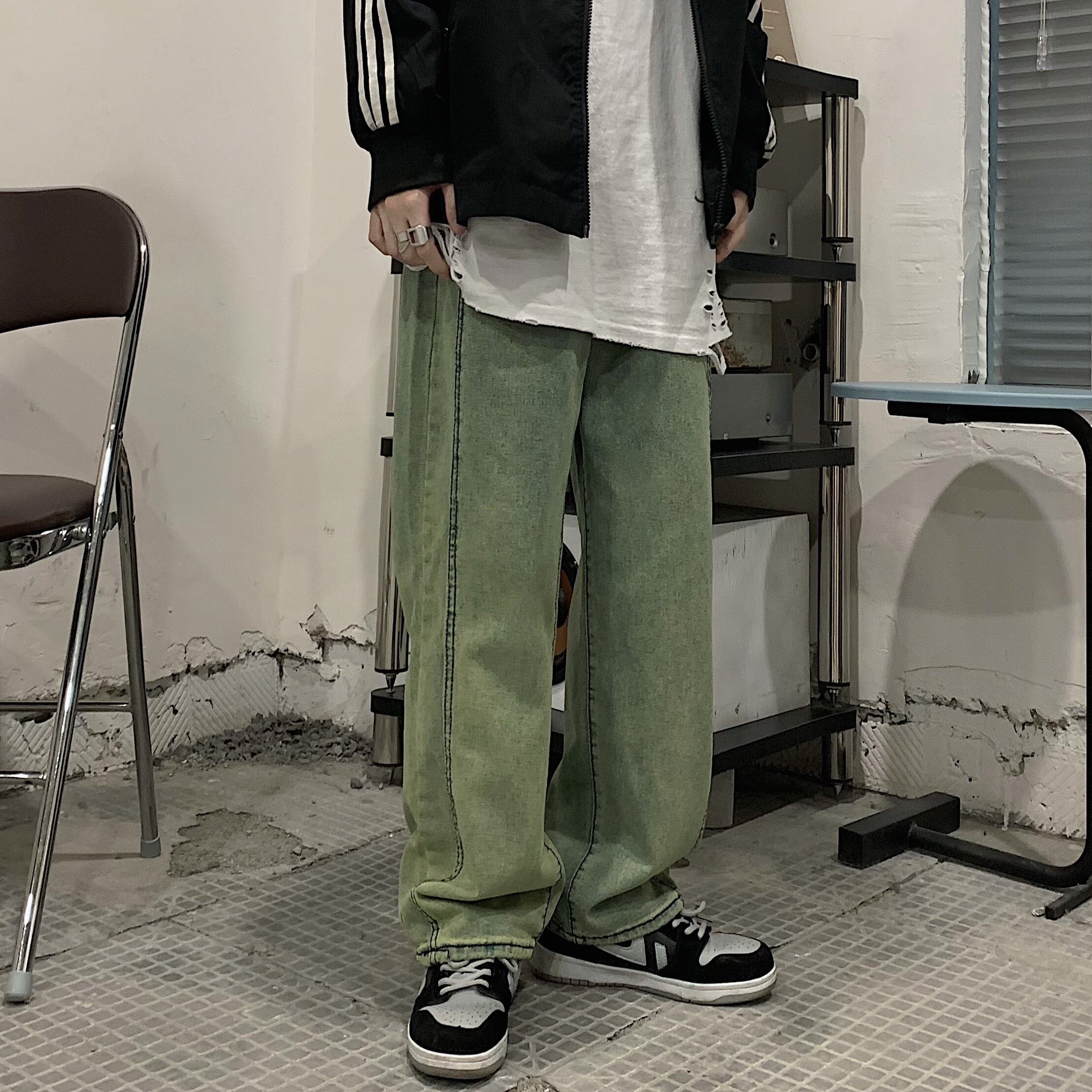ワイドレッグパンツ オータムウィンタースタンダードルーズ薄手ジーンズ レトロ 秋物 冬物 ワイドパンツ Brother_is_Style84335372556