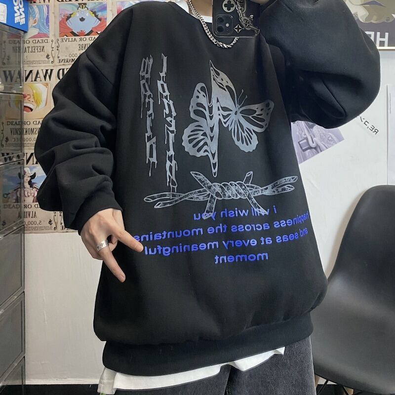 オータムウィンタースタンダードブラックプルオーバー ブラウス ルーズベルベットセーター レディース レトロ 秋物 冬物 Brother_is_Style7394305819