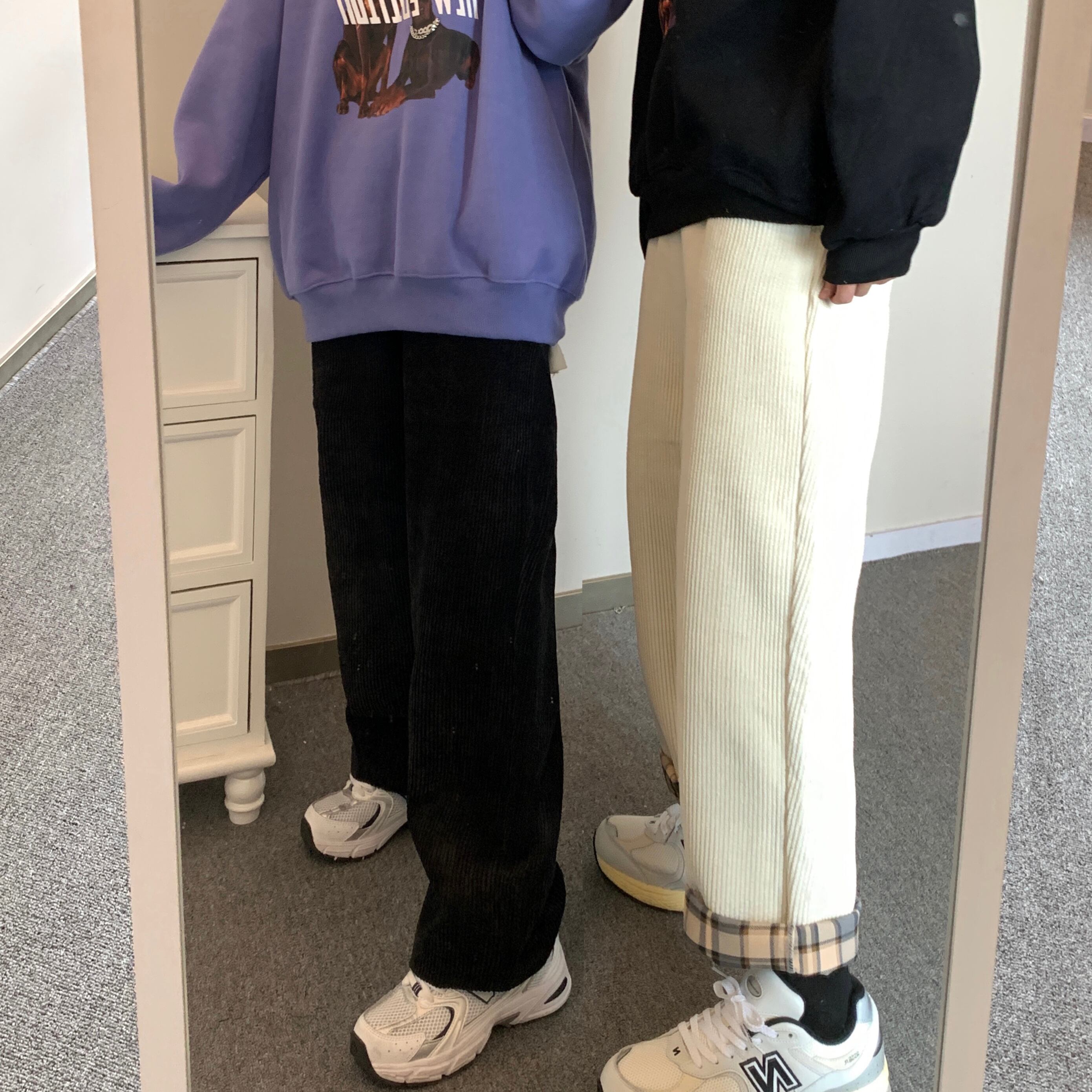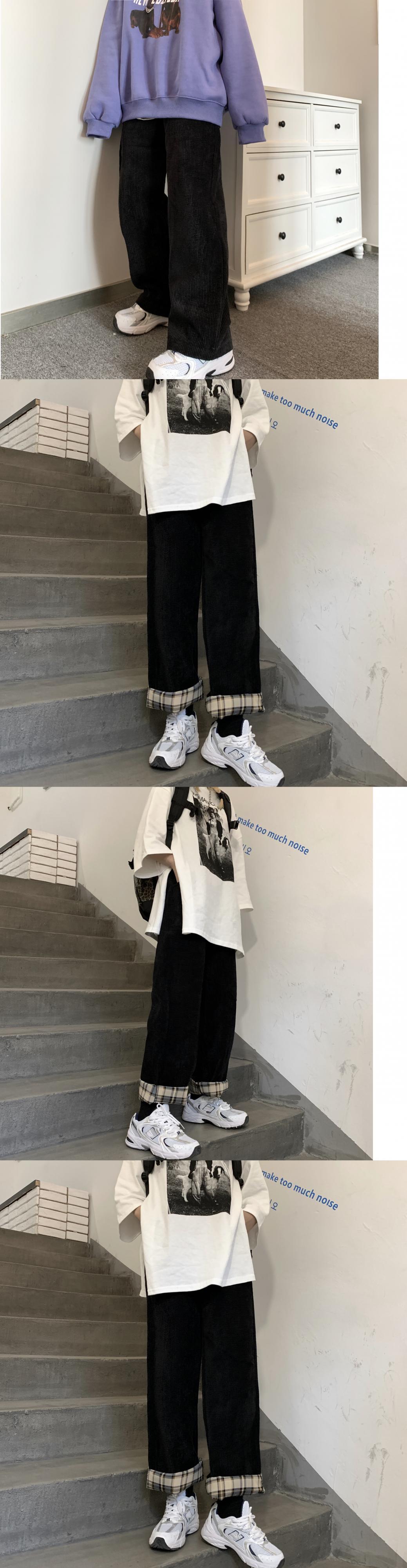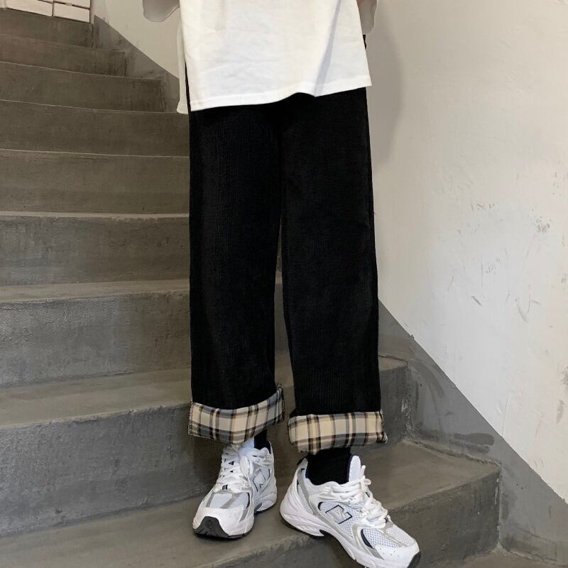 パンツ スプリングオータムスタンダードコーデュロイルーズハイウェストウェストスリムカジュアル レトロ 春物 秋物 Brother_is_Style46954001892