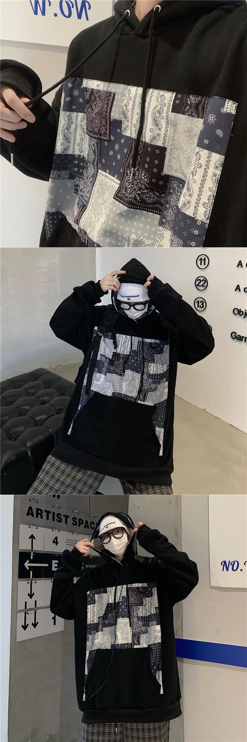 スプリングオータムスタンダードトップス ルーズベルベットフードセーター ジャケット レトロ 春物 秋物 ステッチ Brother_is_Style17541058209