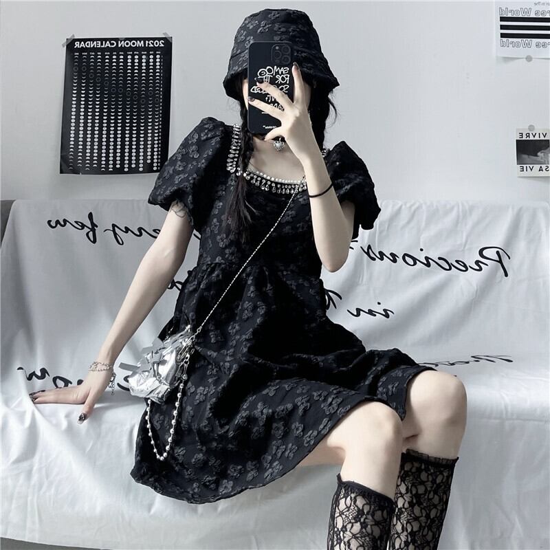 ショートスリーブスカート サマースタンダードスリムブラックドレス レトロ 夏物 Brother_is_Style12019441670