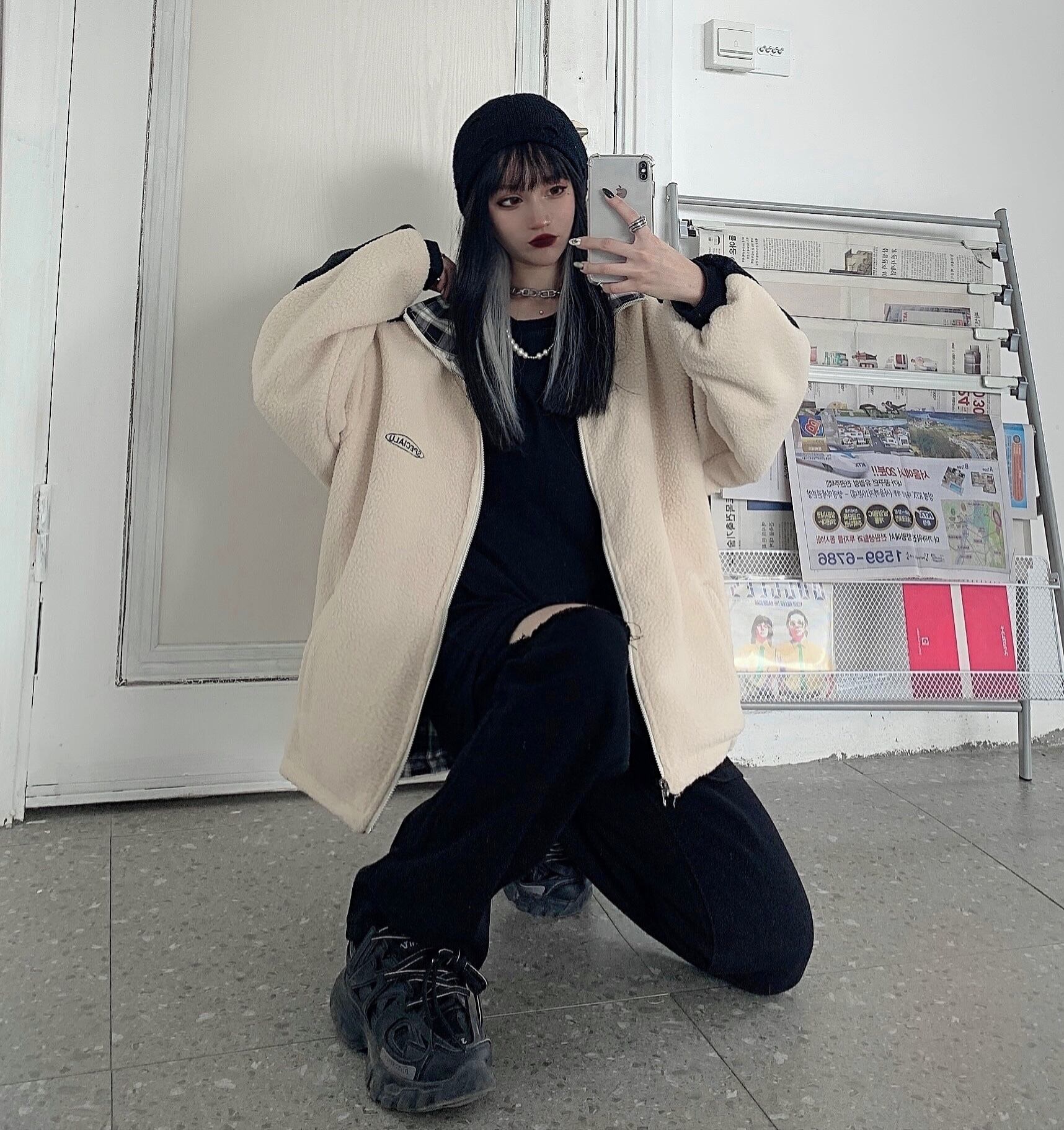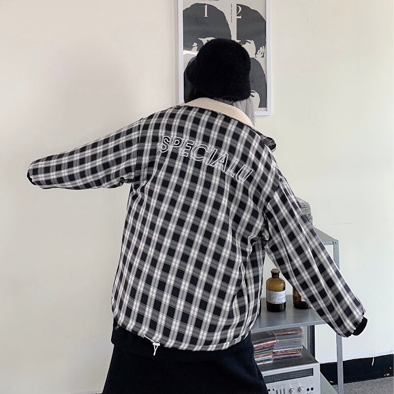 格子柄ジャケット ウィンタールーズベルベットトップス 冬物 Brother_is_Style6966196926