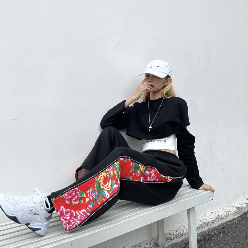 パンツ スプリングオータムFlowerデザイン ルーズベルベットカジュアル 春物 秋物 フラワーデザイン Brother_is_Style17692148605