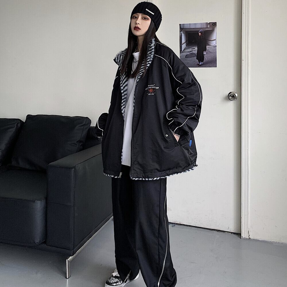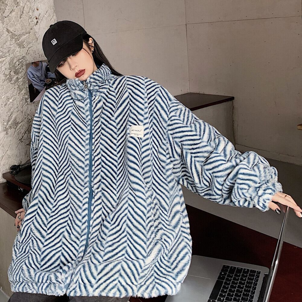ウィンタースタイルストライプベルベットコート ルーズ コットン かわいい 冬物 Brother_is_Style29559221995