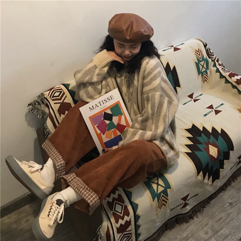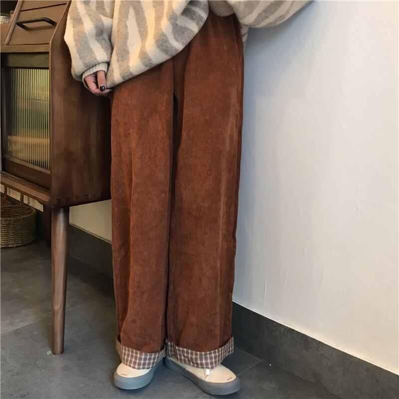 パンツ オータムウィンタースタイルスタンダードコーデュロイワイドレッグルーズハイウェストウェストカジュアル レトロ かわいい 秋物 冬物 ワイドパンツ Brother_is_Style40239706286