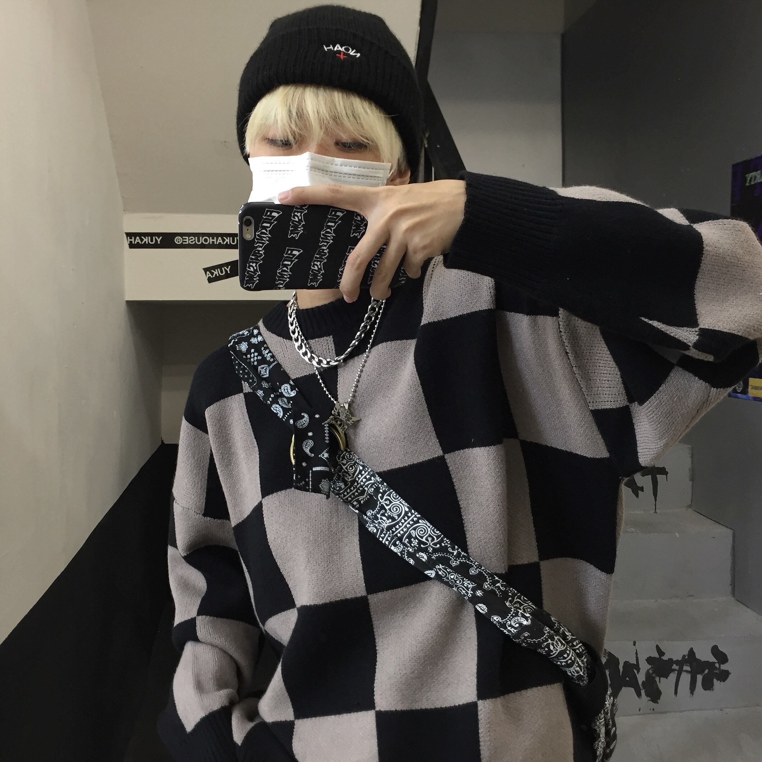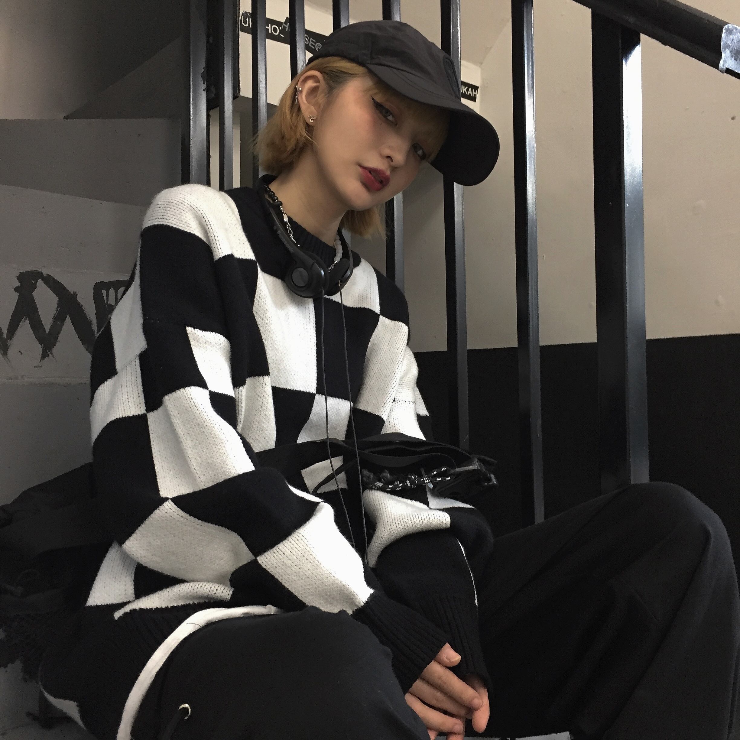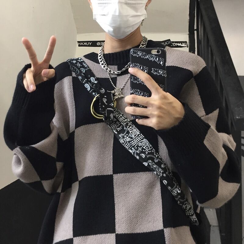 オータムウィンター格子柄セーター コート ルーズレディース 秋物 冬物 Brother_is_Style74532575740