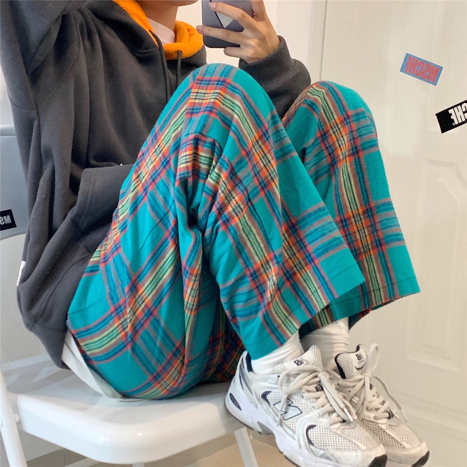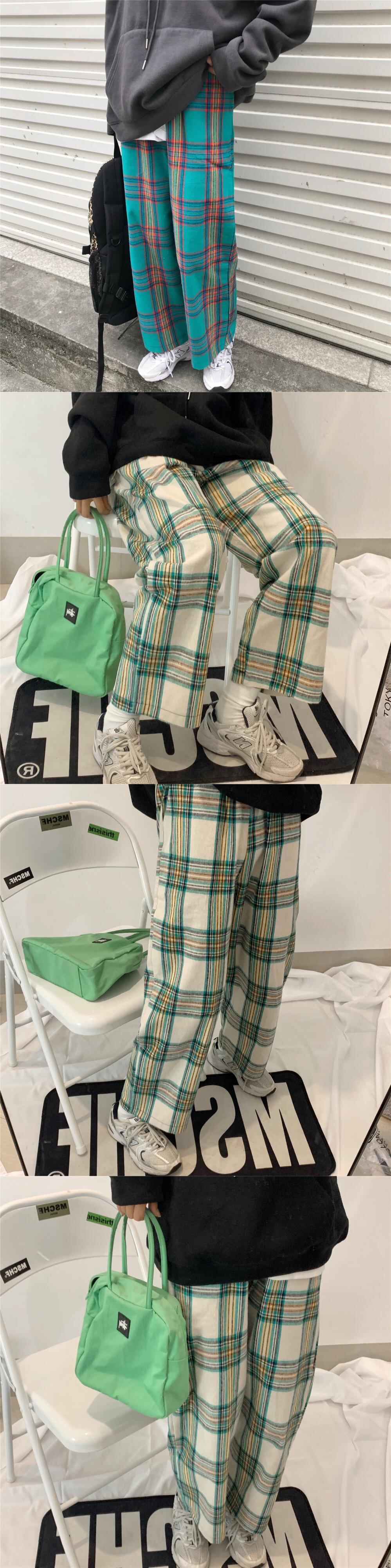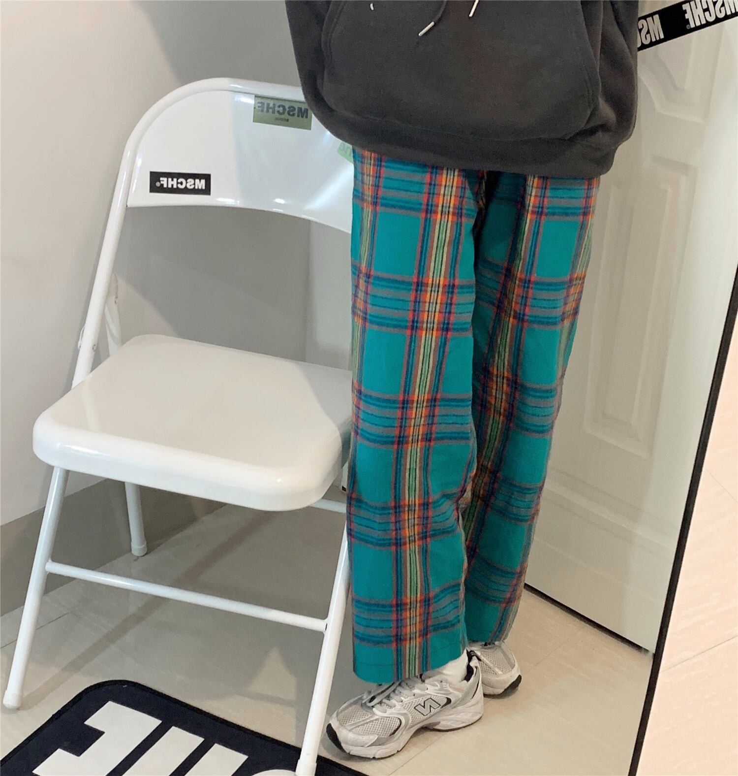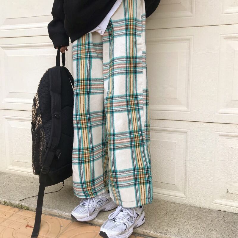 パンツ スプリングオータムスタンダードハイウェストウェスト格子柄カジュアルルーズ薄手ワイドレッグ レトロ 春物 秋物 ワイドパンツ Brother_is_Style31991364802