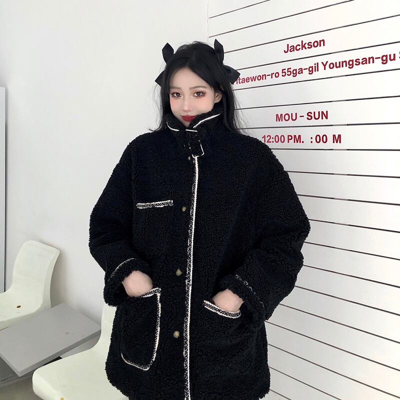 ウィンタースタイルブラックウールジャケット ルーズ コットン 冬物 Brother_is_Style70359774752
