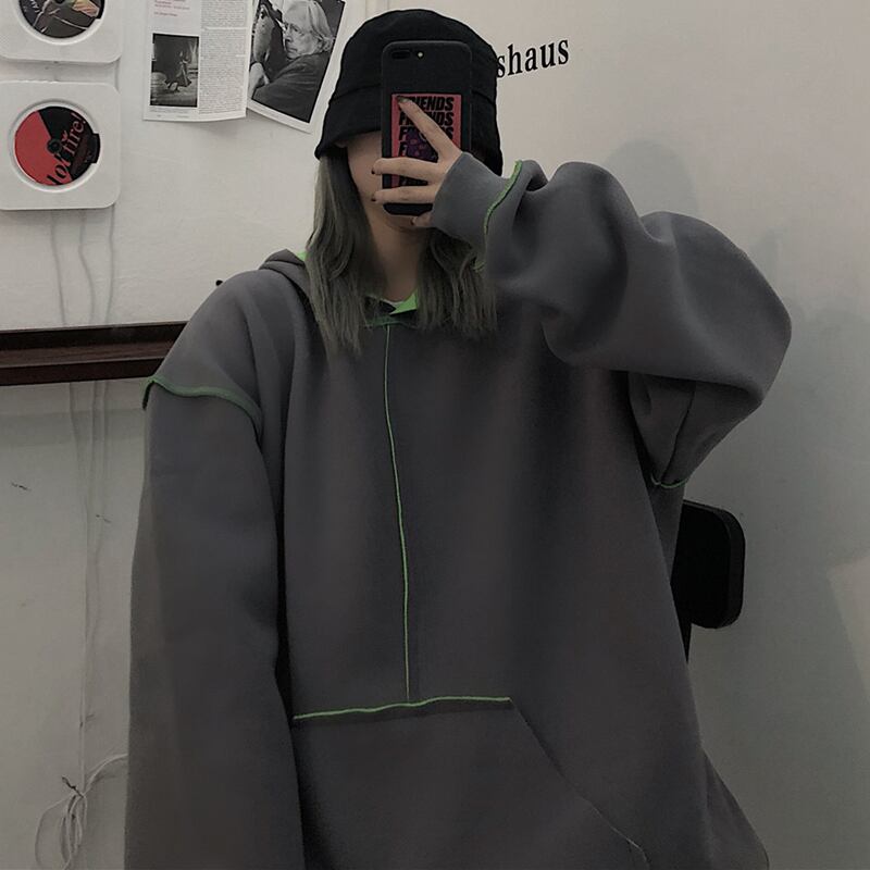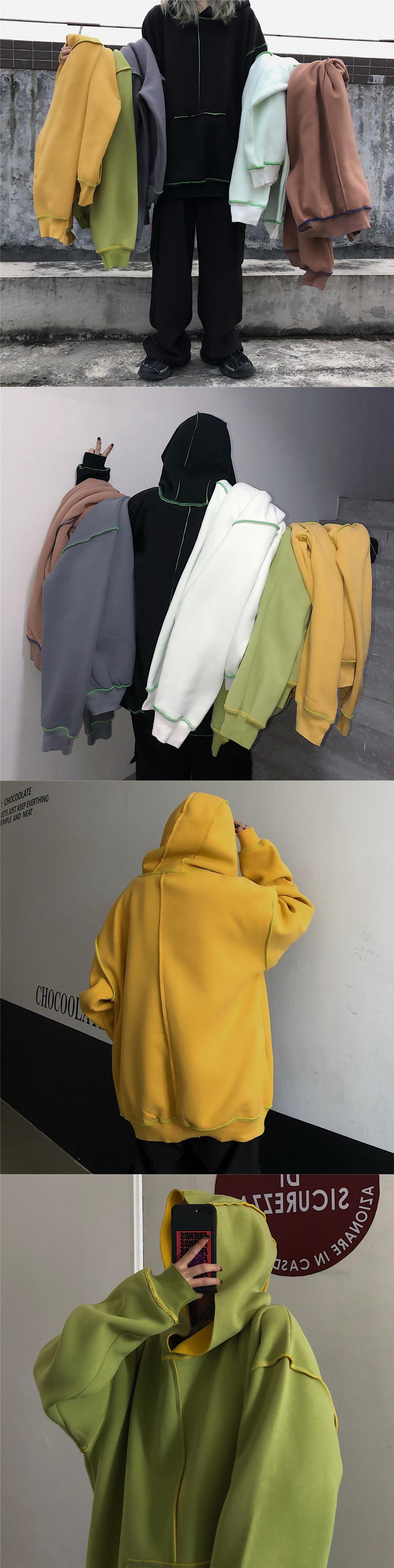 スプリングオータムスタイルスタンダードルーズベルベットフードセーター レディース レトロ 春物 秋物 ステッチ Brother_is_Style23983350647