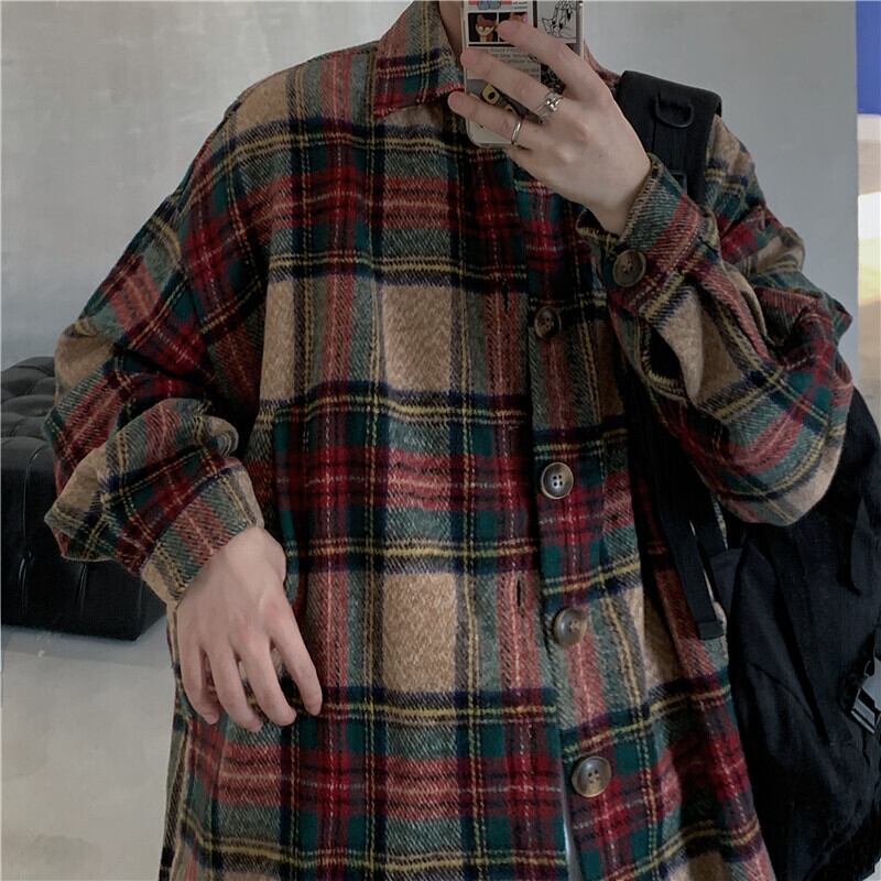 オータムウィンター格子柄シャツ ルーズジャケット レディース ロング ストリート 秋物 冬物 Brother_is_Style12622631082