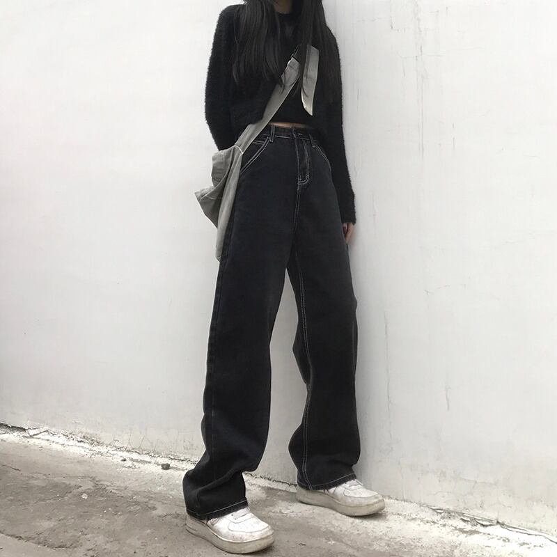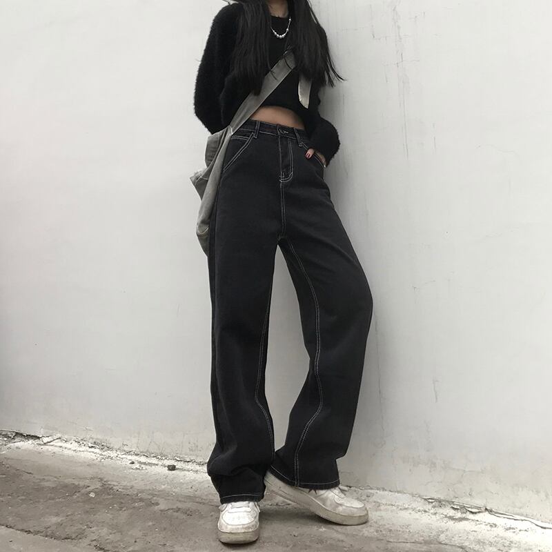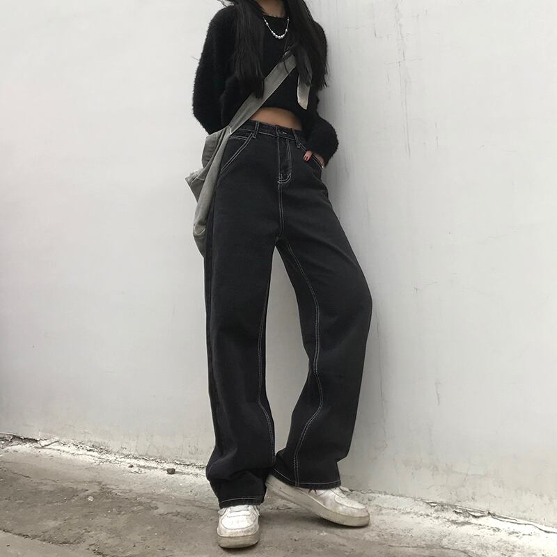 パンツ スプリングオータムスタンダードルーズハイウェストウェスト薄手ジーンズ レトロ 春物 秋物 Brother_is_Style36173965039