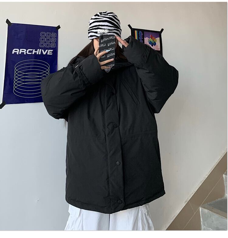 ウィンタースタイルブラックジャケット ルーズフード コットン かわいい 冬物 Brother_is_Style1414962423