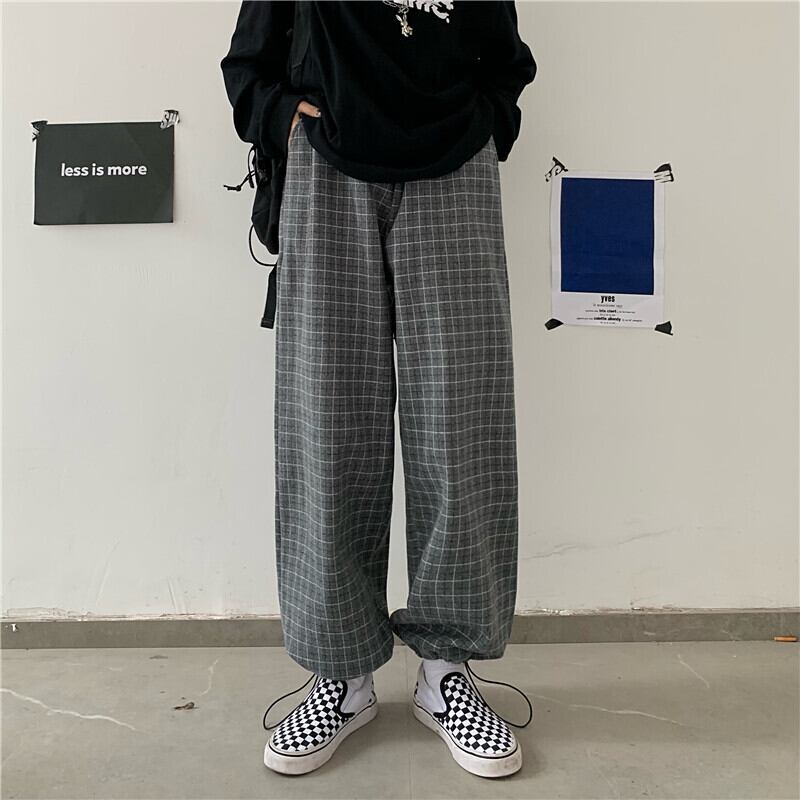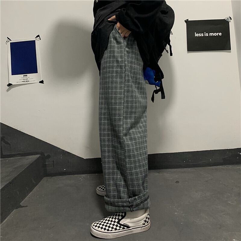 オータムウィンタースタンダード格子柄パンツ ルーズベルベットカジュアル レトロ 秋物 冬物 Brother_is_Style7252960228