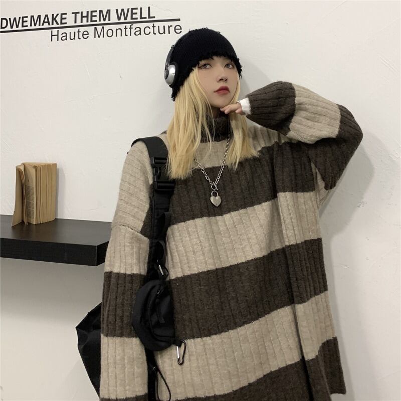 オータムウィンターストライプセーター コート ルーズプルオーバー レディース 秋物 冬物 Brother_is_Style85175026383