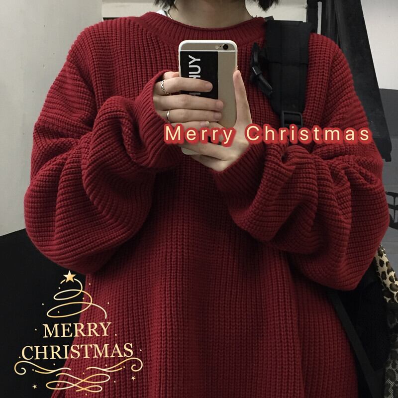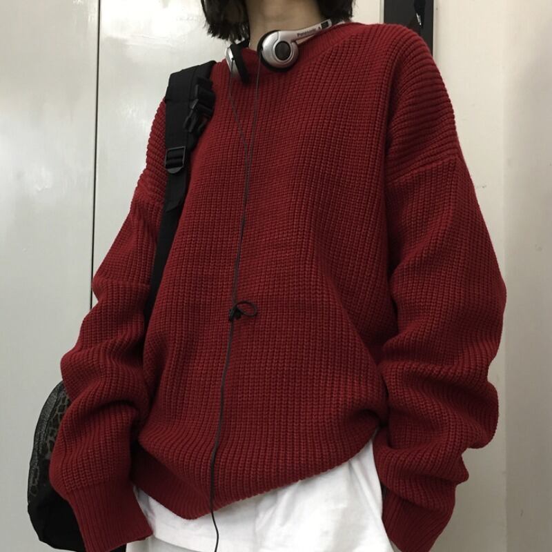 スプリングオータムスタイルレッドニットセーター コート ルーズプルオーバー レディース 春物 秋物 Brother_is_Style74286089654