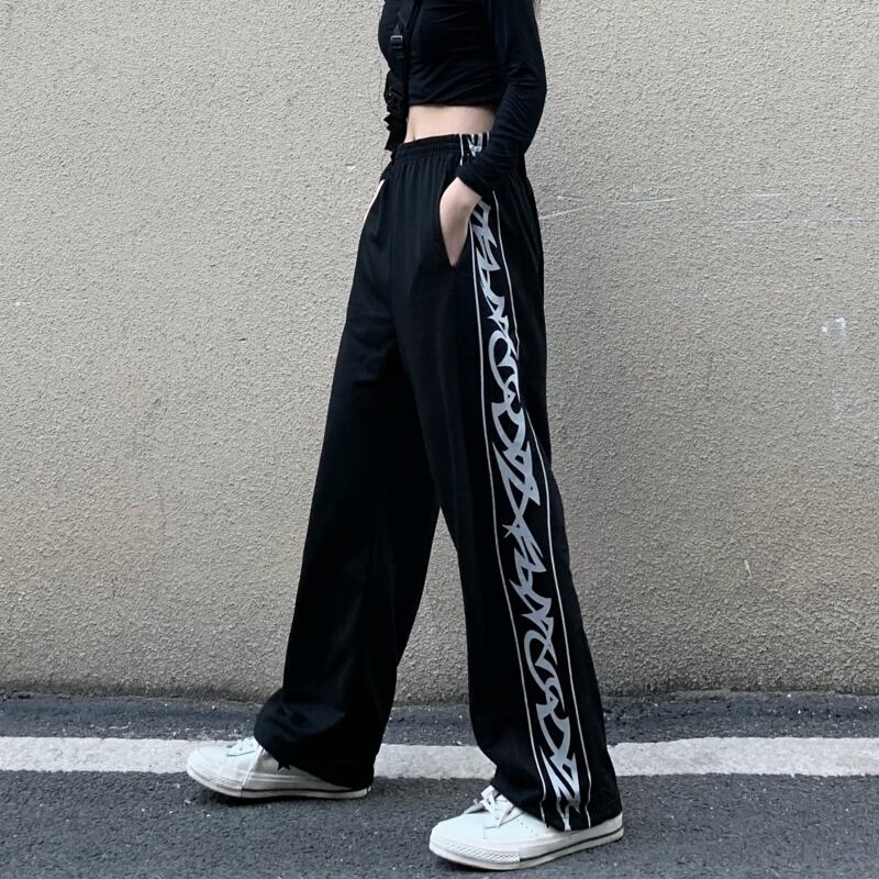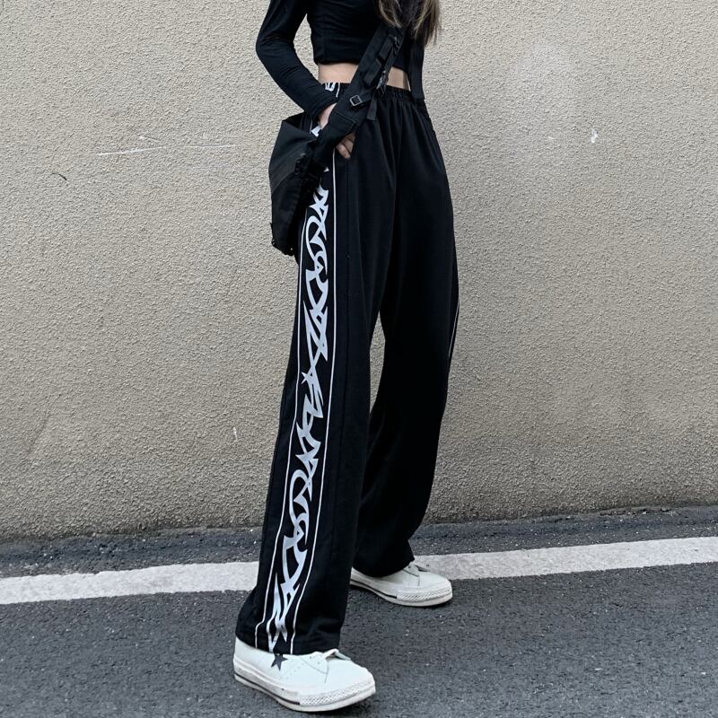 薄手パンツ レディーススプリングオータムブラックワイドレッグルーズカジュアル 春物 秋物 ワイドパンツ Brother_is_Style17067194384
