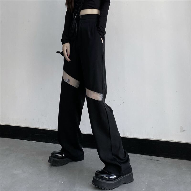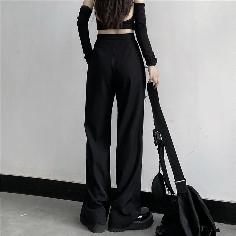 パンツ サマーブラックカジュアルルーズワイドレッグハイウェストウェスト 夏物 ワイドパンツ Brother_is_Style64405358353