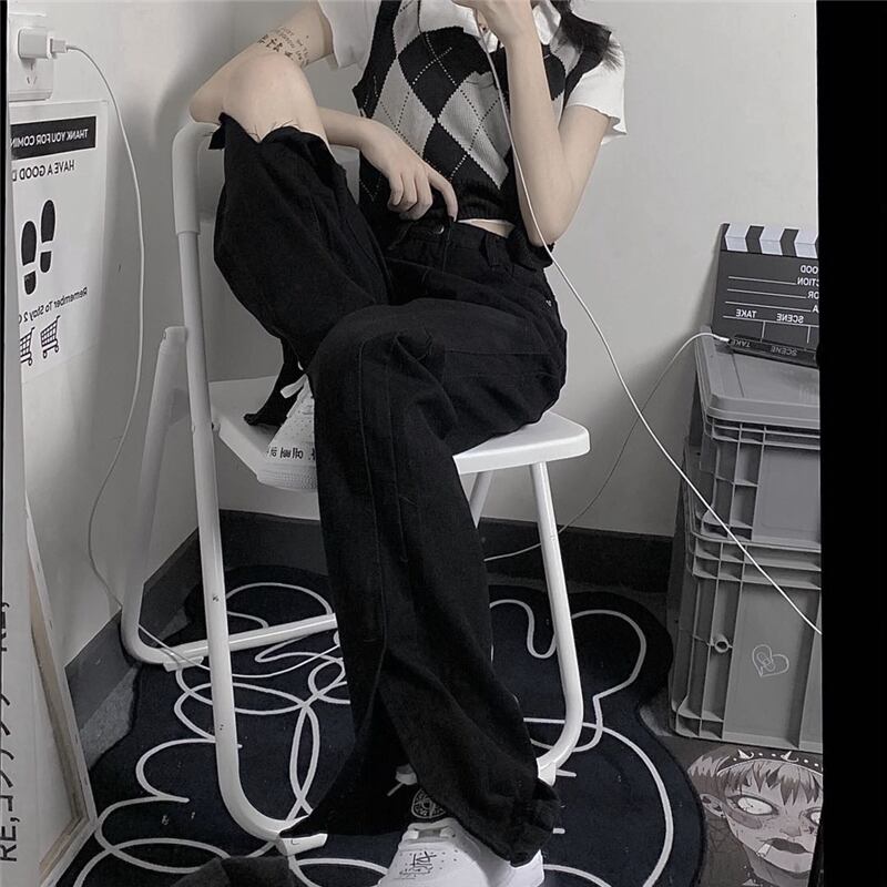 ブラックパンツ サマースタンダードジーンズ ルーズハイウェストウェストワイドレッグ レトロ 夏物 ワイドパンツ Brother_is_Style7136930204