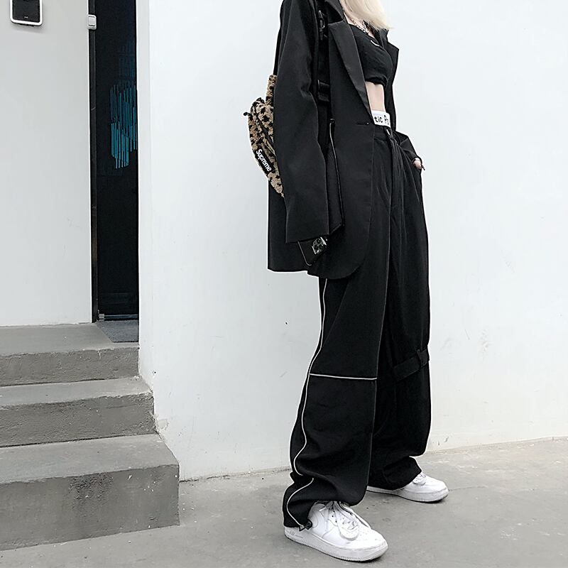 パンツ オータムウィンターブラックルーズハイウェストカジュアル ストリート 秋物 冬物 Brother_is_Style29332948197