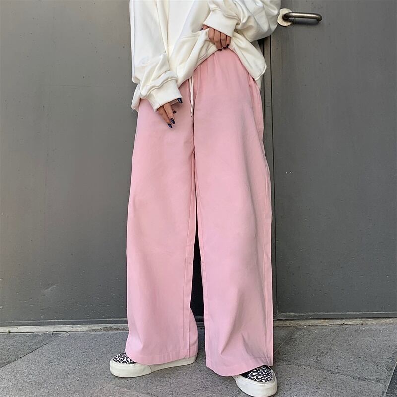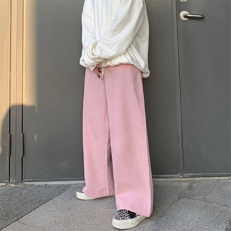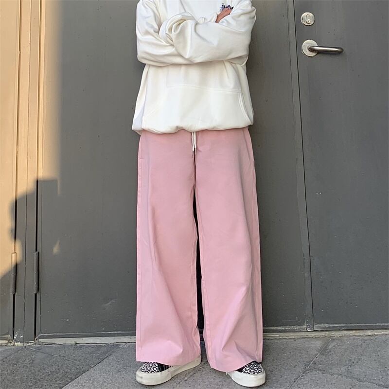 パンツ オータムウィンターワイドレッグハイウェストウェストルーズカジュアル ピンク 秋物 冬物 ワイドパンツ Brother_is_Style72443413151