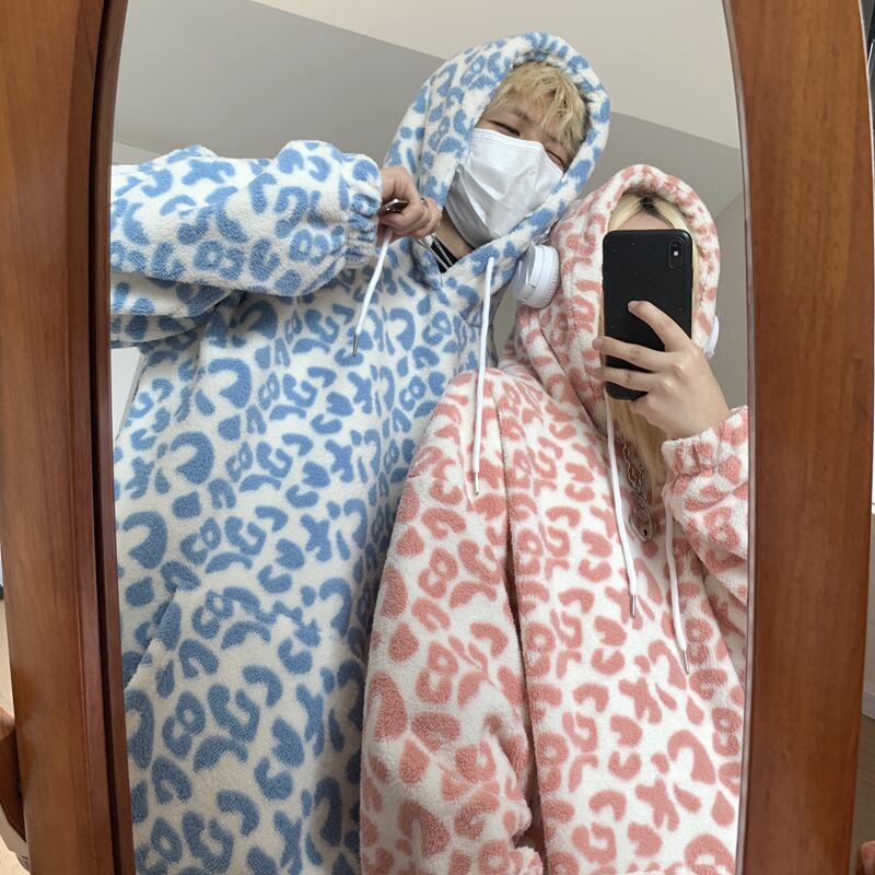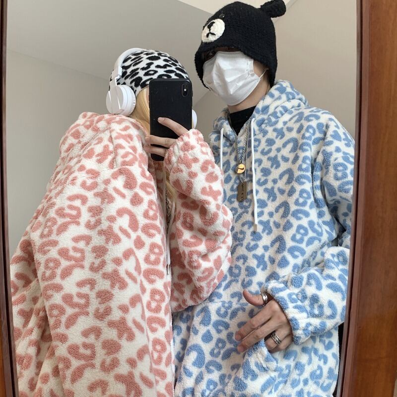 スタンダードレオパードプリント柄セーター ルーズベルベットフードジャケット レトロ オータム 秋物 ウィンター 冬物 Brother_is_Style83993482541