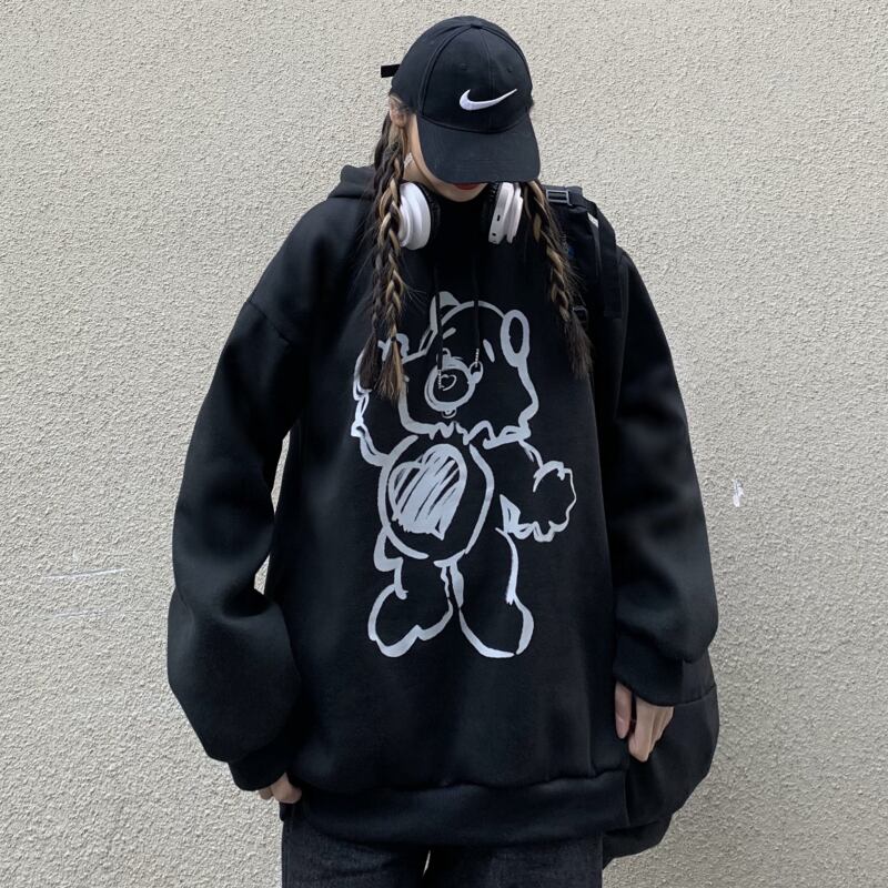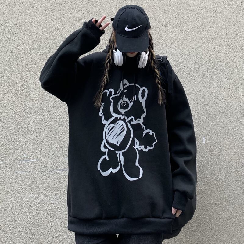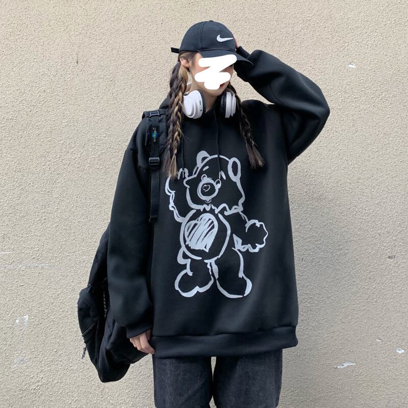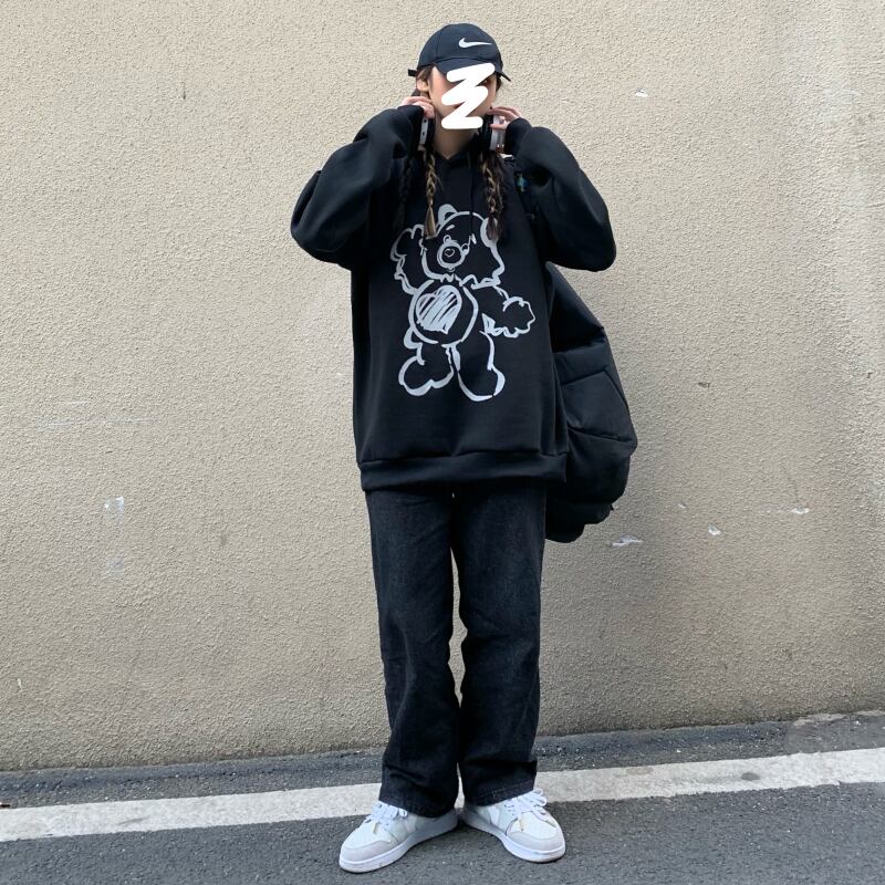 オータムウィンターブラックフードセーター ルーズベルベットコート かわいい 秋物 冬物 Brother_is_Style64132613704