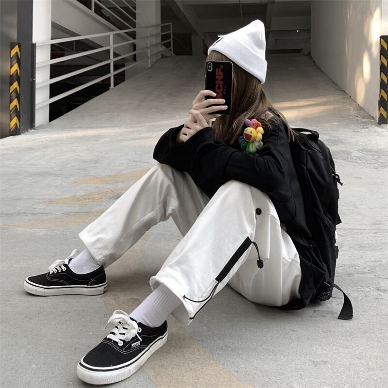 カジュアルパンツ オータムウィンターホワイトルーズベルベットハイウェストウェストワイドレッグ 秋物 冬物 ワイドパンツ Brother_is_Style75860588085