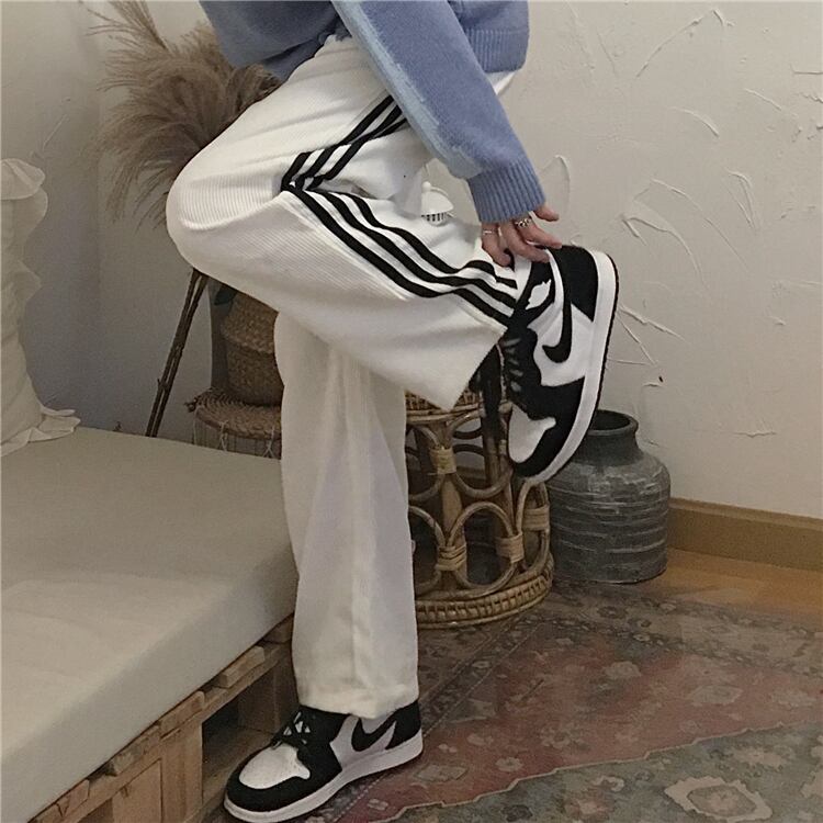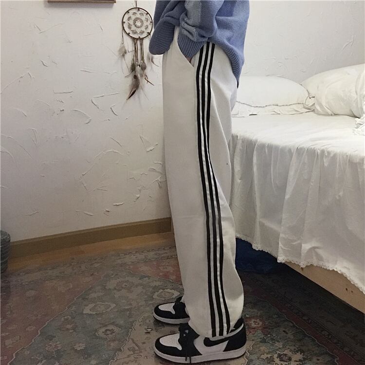 コーデュロイパンツ スプリングオータムストライプルーズハイウェストウェストワイドレッグカジュアル 春物 秋物 ワイドパンツ Brother_is_Style48989697549