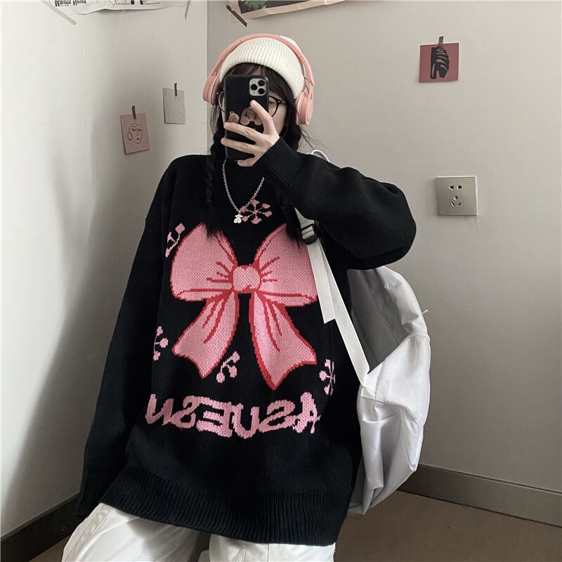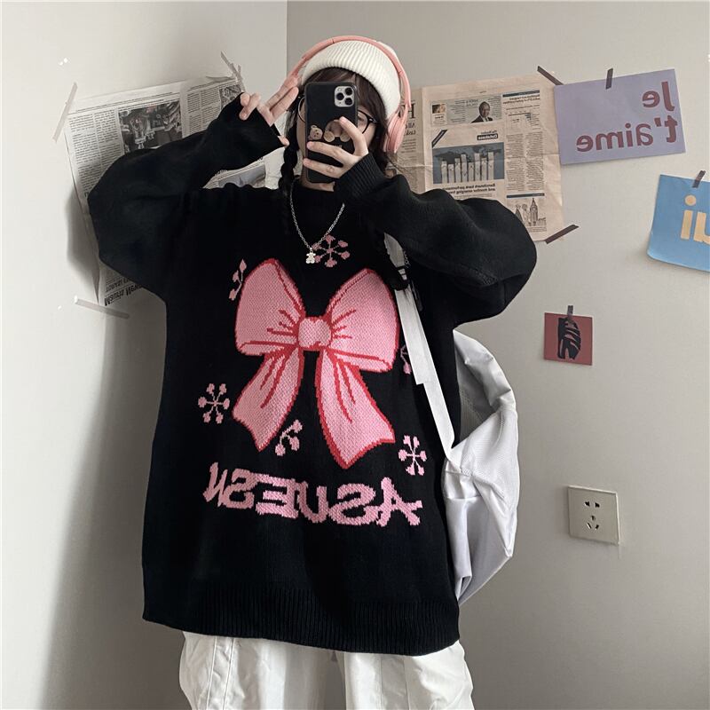 オータムウィンタースタンダードセーター ルーズジャケット リボン レトロ 秋物 冬物 Brother_is_Style63899603980