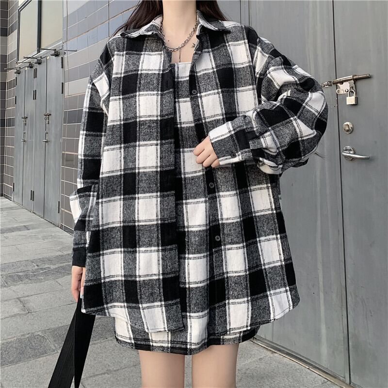 レディースオータムウィンタースタンダードスリムスカート ルーズ格子柄シャツ レトロ 秋物 冬物 Brother_is_Style35892013729