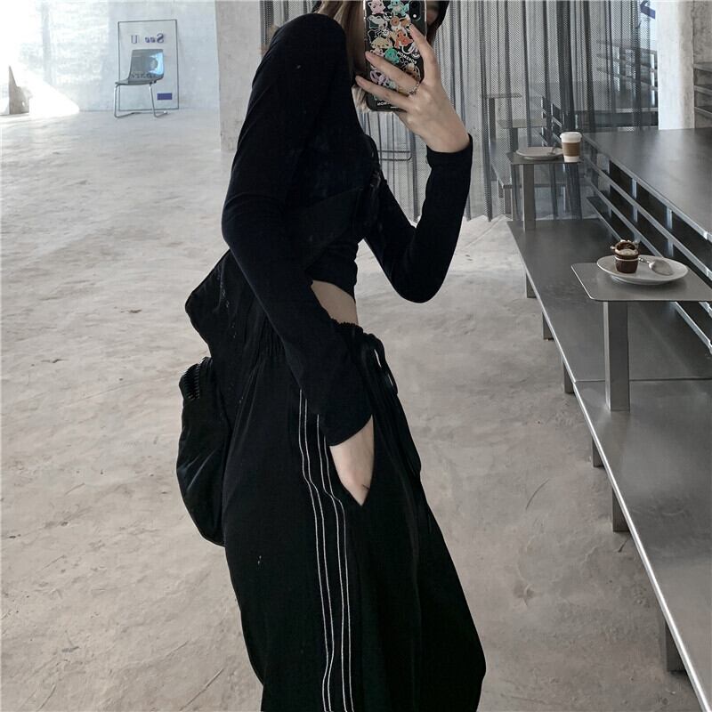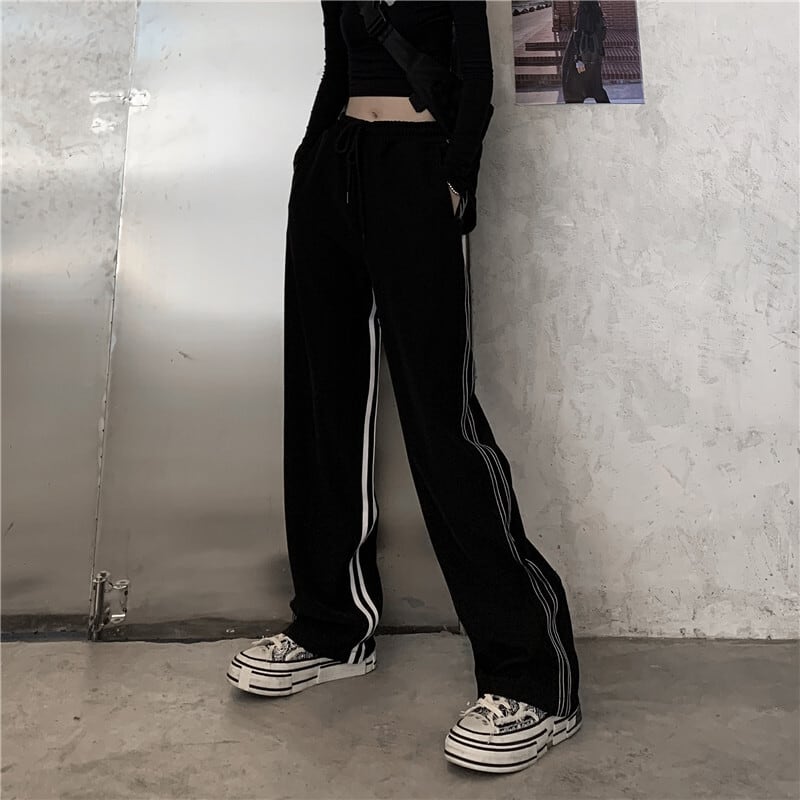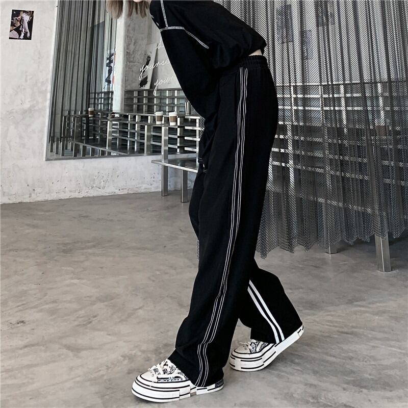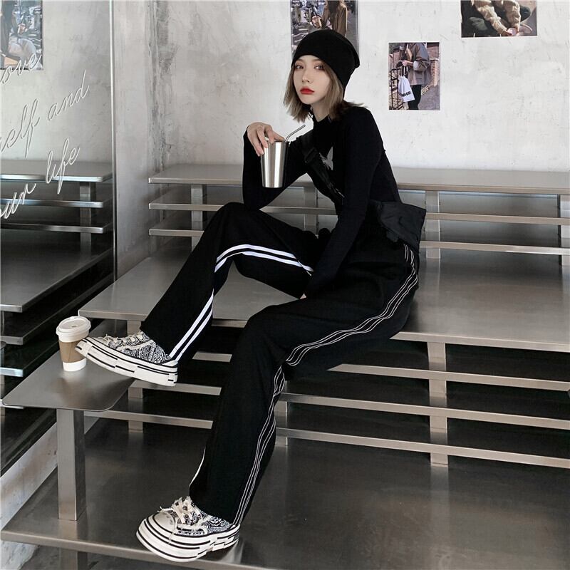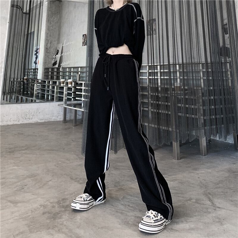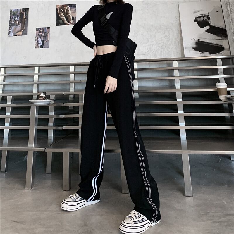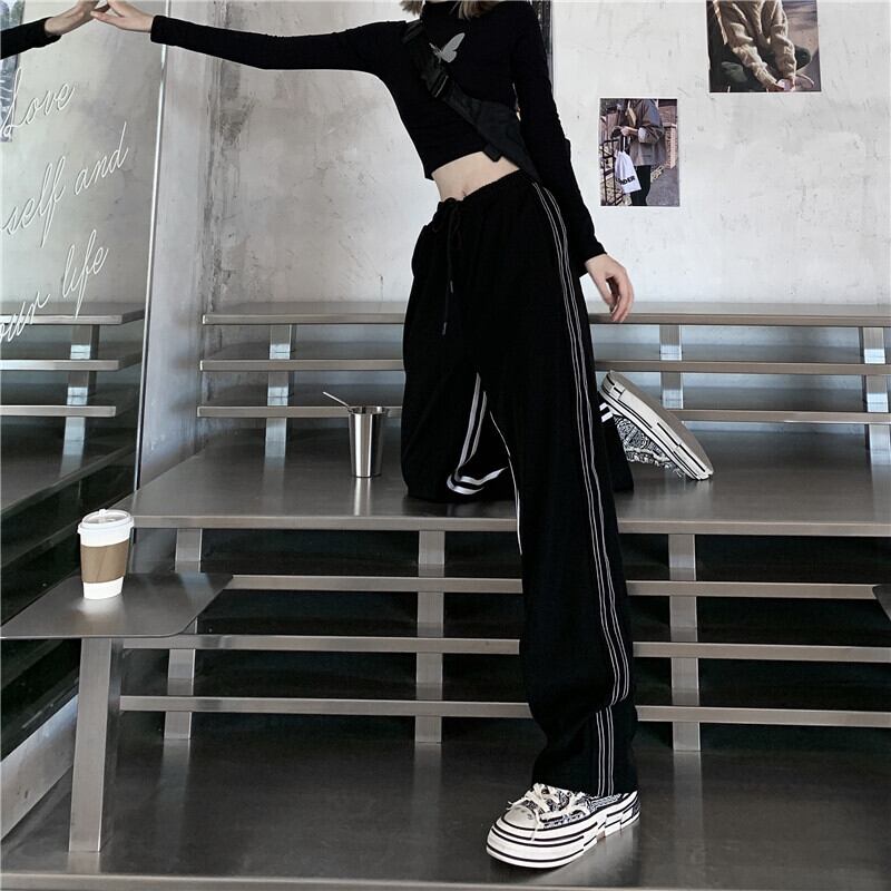 パンツ スプリングオータムブラックスリムルーズハイウェストウェストワイドレッグカジュアル 春物 秋物 ワイドパンツ Brother_is_Style22570943586