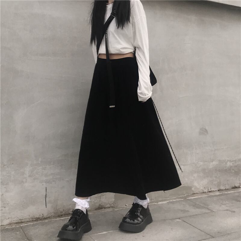 コーデュロイスカート スプリングブラックAラインロング 春物 Brother_is_Style10642771109