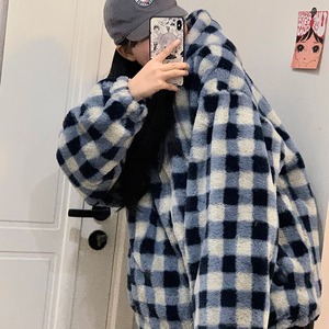 ウィンターウール格子柄ジャケット ルーズ コットン 冬物 Brother_is_Style83182290418