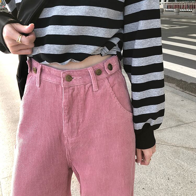 パンツ オータムウィンタースタイルルーズ薄手ハイウェストカジュアル ピンク 秋物 冬物 Brother_is_Style682259449