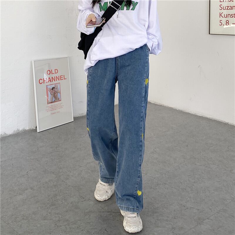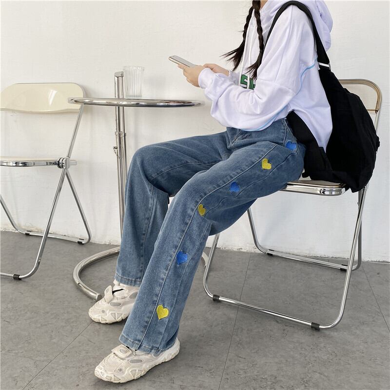 パンツ スプリングオータムスタンダード刺繍薄手ルーズハイウェストウェストジーンズ レトロ 春物 秋物 Brother_is_Style27896428641