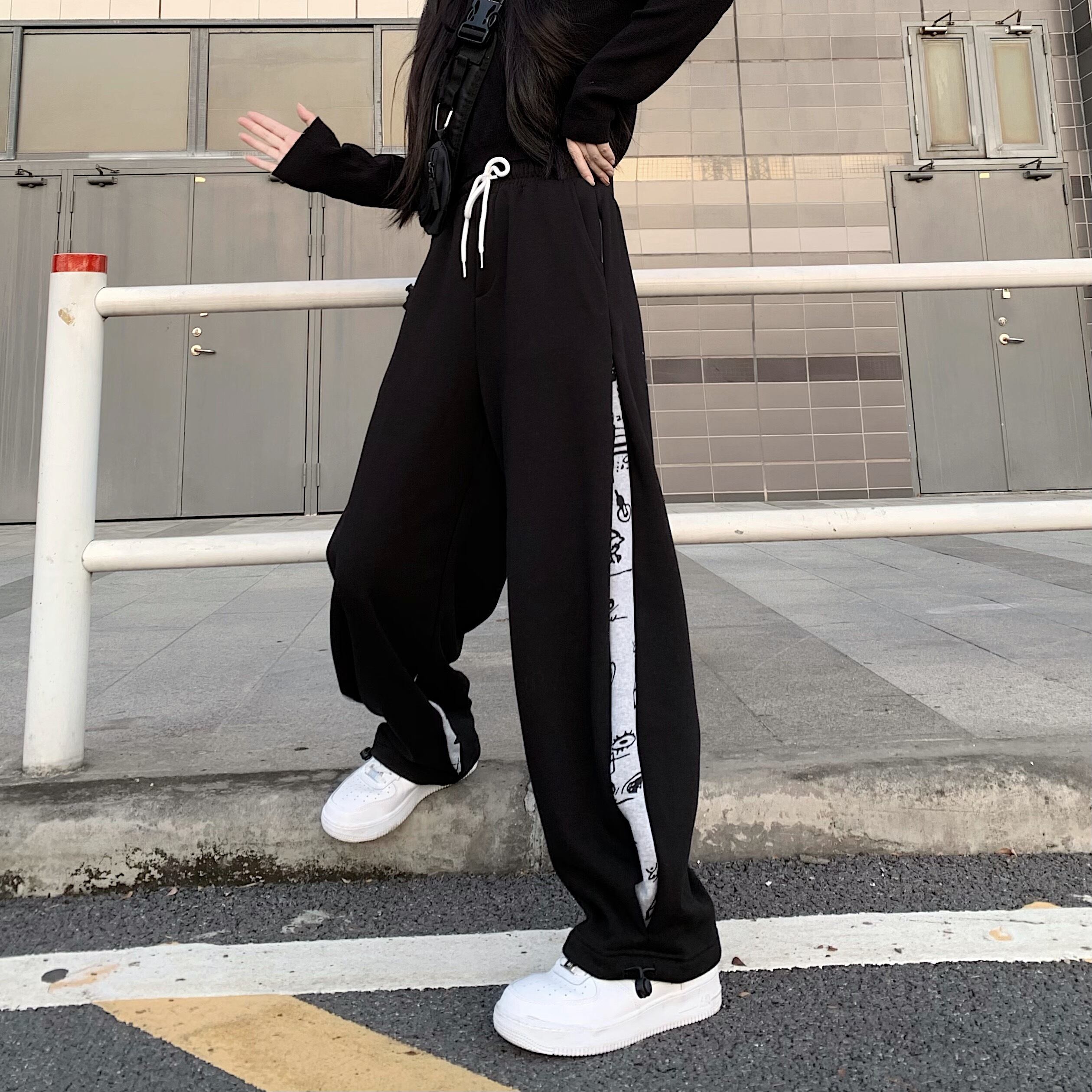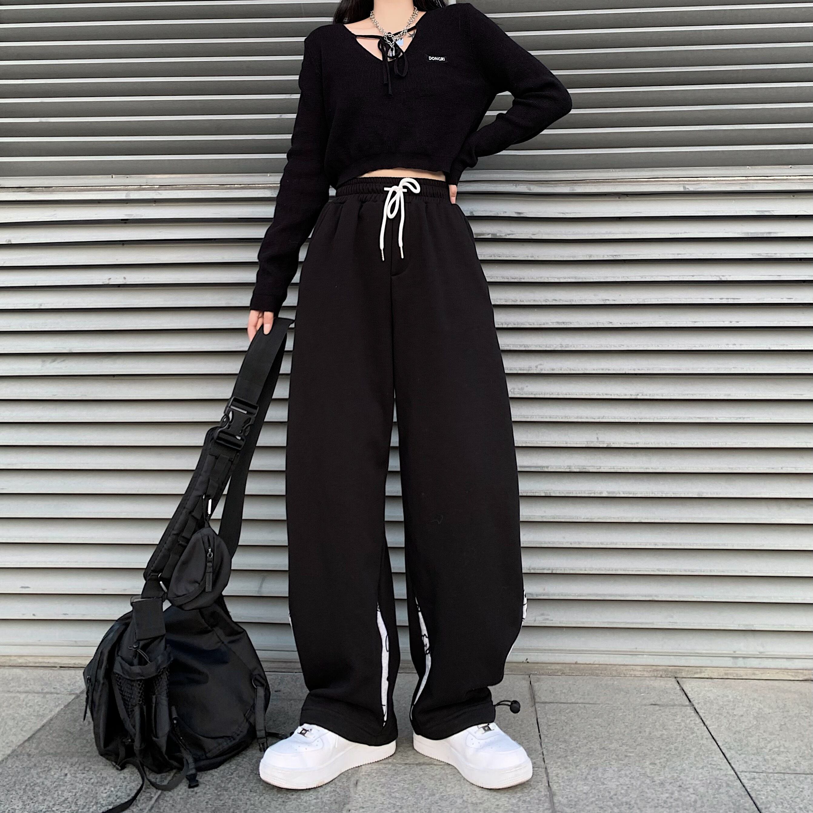 パンツ スプリングブラックルーズワイドレッグハイウェストウェストカジュアル 春物 ワイドパンツ Brother_is_Style66241463682