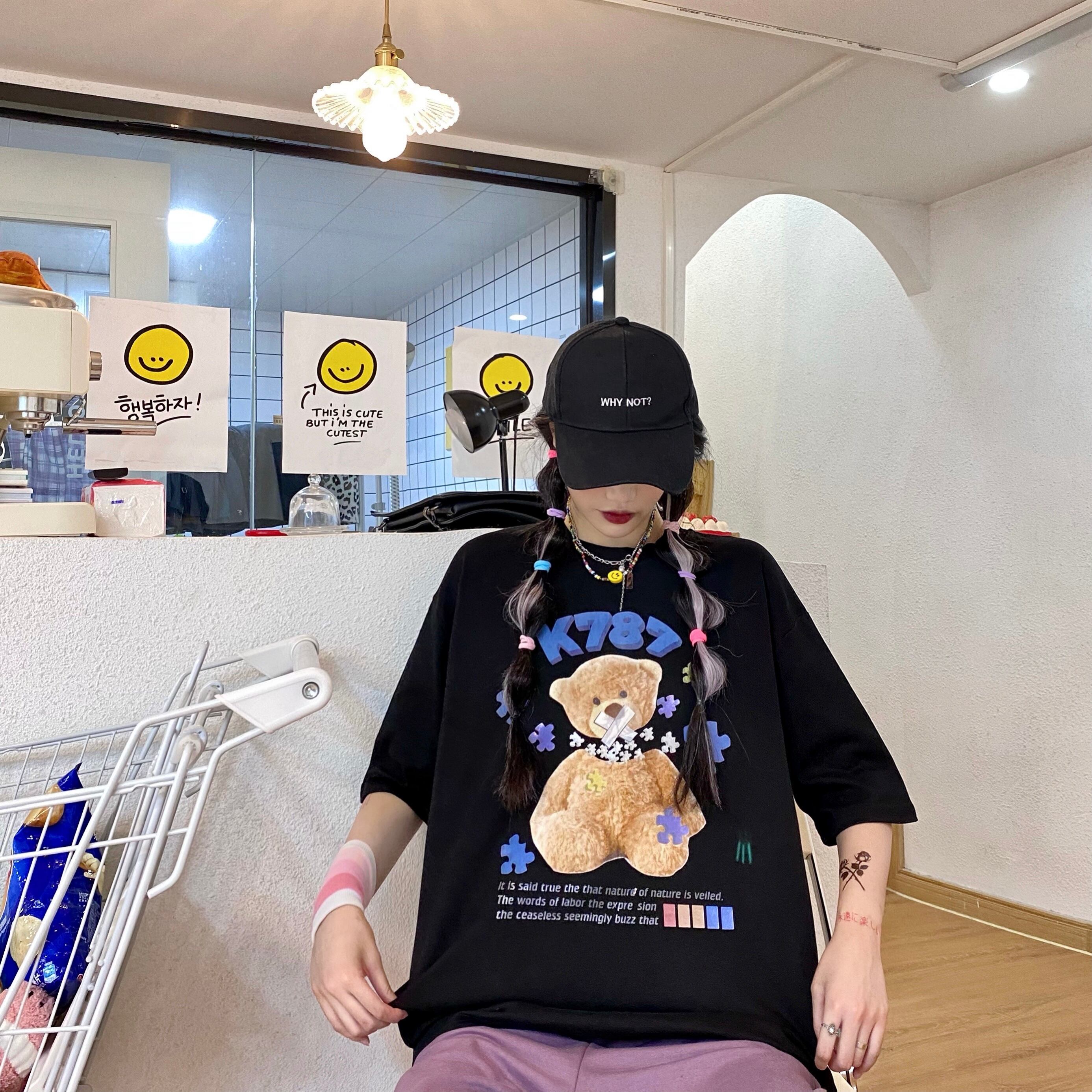 ブラックサマースタンダードTシャツ ルーズトップス レトロ 夏物 Brother_is_Style92843541291