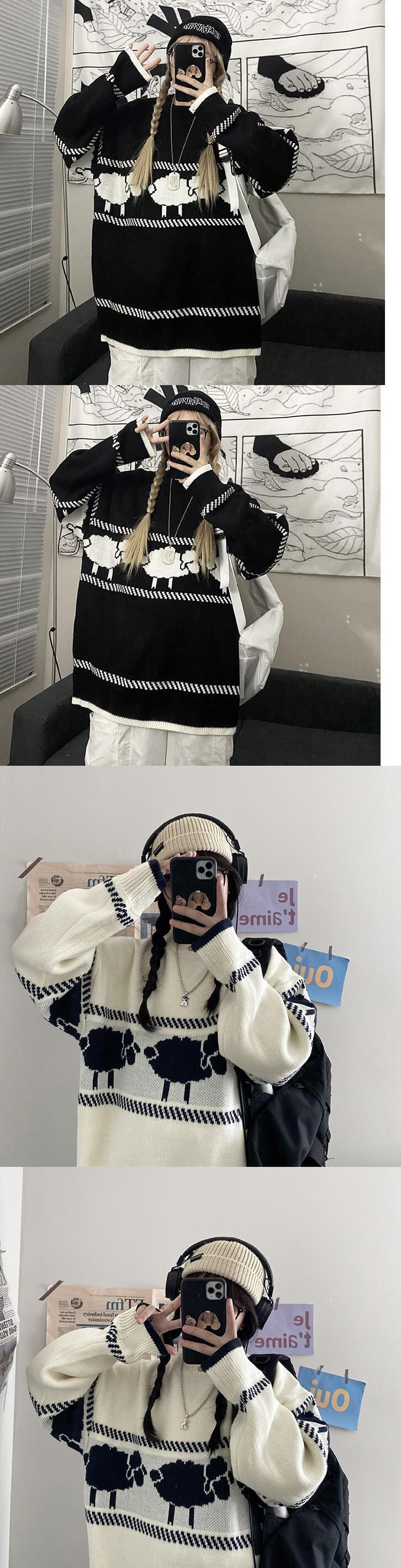 スプリングオータムスタイルジャカードセーター ルーズプルオーバー コート 春物 秋物 Brother_is_Style65978512480