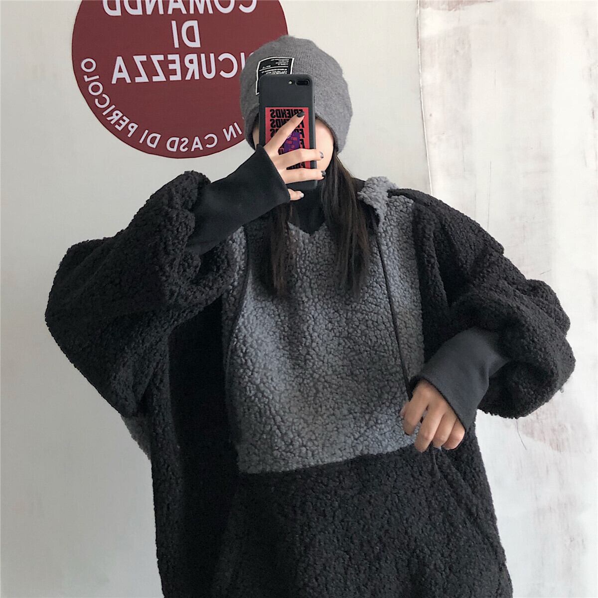 フードセーター レディーススプリングオータムスタイルルーズベルベットウールコート ジャケット かわいい 春物 秋物 Brother_is_Style8953266611