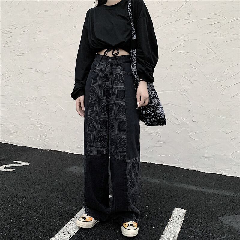 パンツ オータムウィンタースタンダードFlowerデザイン ルーズハイウェストウェストワイドレッグジーンズ レトロ 秋物 冬物 ワイドパンツ フラワーデザイン Brother_is_Style88072941034
