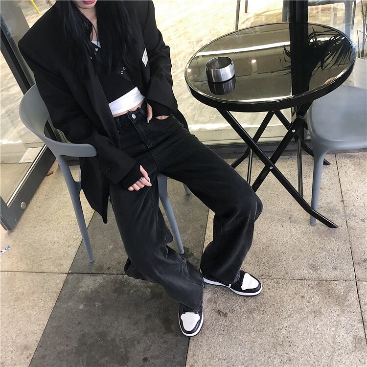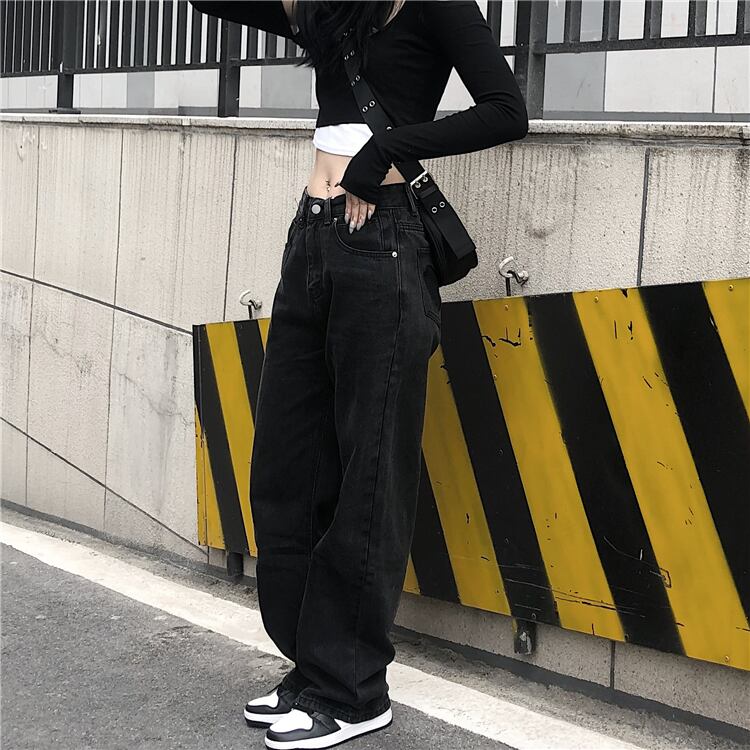 パンツ オータムウィンタースタンダードブラックルーズハイウェストジーンズ レトロ 秋物 冬物 Brother_is_Style17544349570