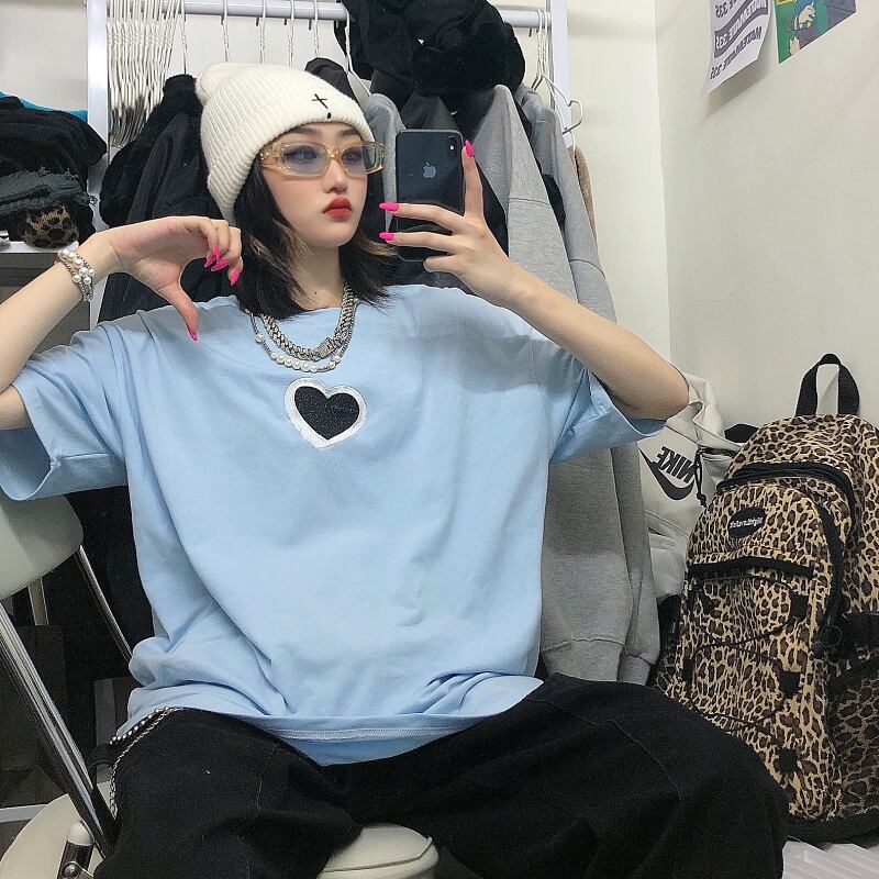 サマー刺繍ブルーシャツ ルーズTシャツ 夏物 Brother_is_Style59893911196
