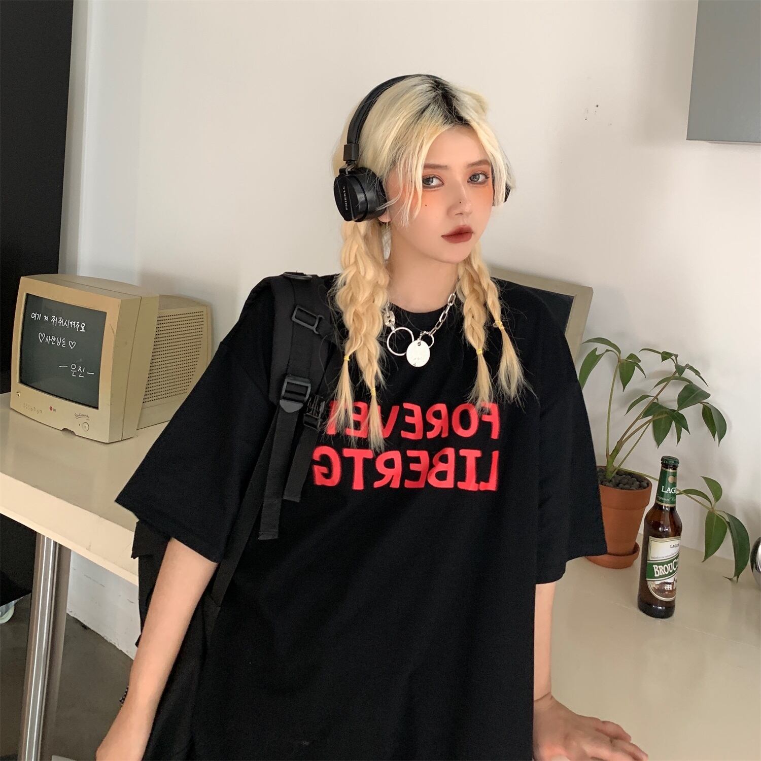 サマーカラートップス ルーズTシャツ コットン 夏物 ピュア Brother_is_Style93818448585