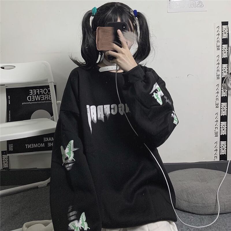 オータムウィンタースタンダードButterflyデザイン プルオーバー セーター ルーズベルベットブラックトップス レディース レトロ 秋物 冬物 Brother_is_Style21712792897