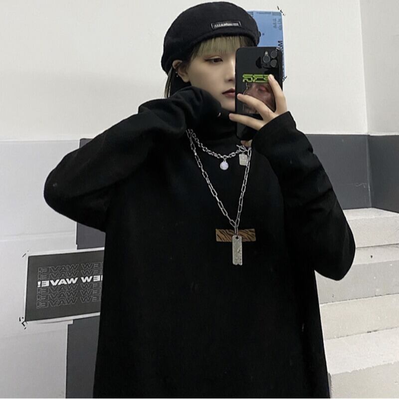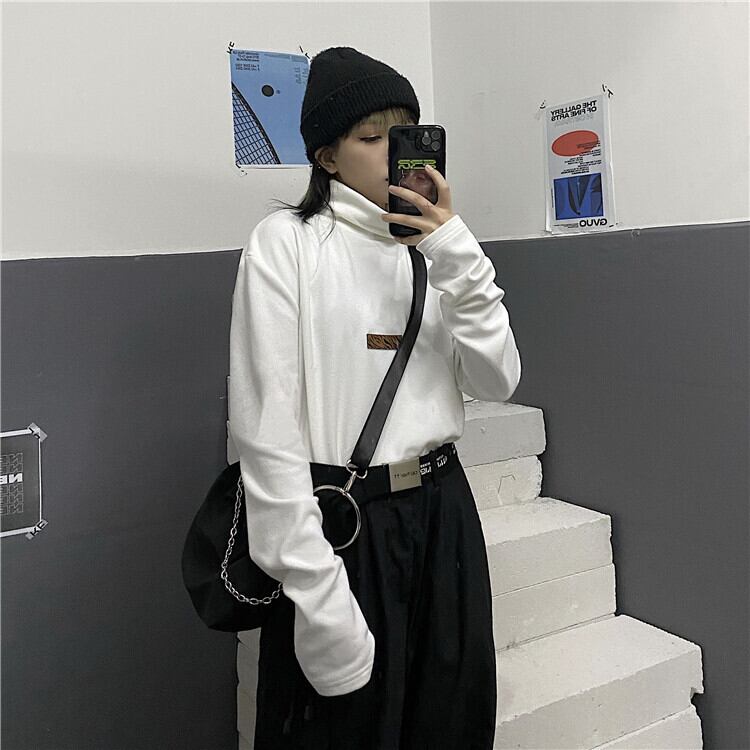 スプリングオータムホワイトシャツ ルーズベルベットTシャツ ロング 春物 秋物 Brother_is_Style90337884839