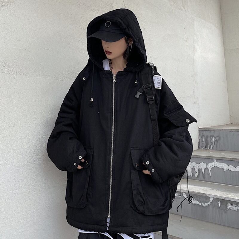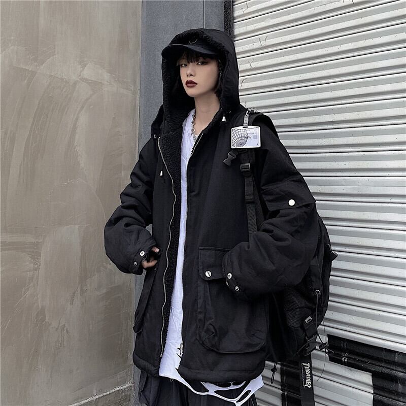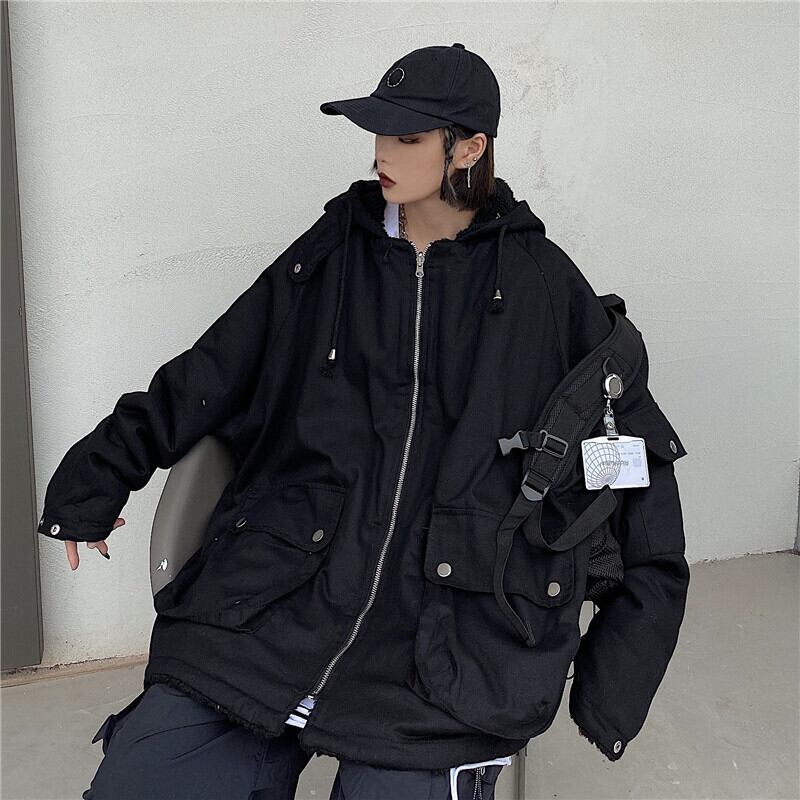 オータムウィンターブラックウールコート ルーズレディース コットン 秋物 冬物 Brother_is_Style23834683839