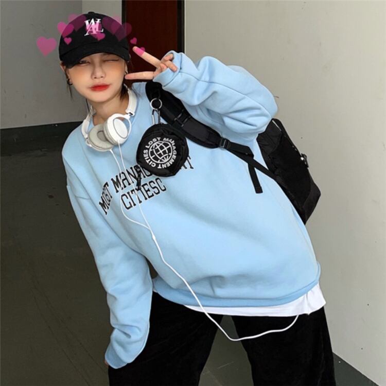 セーター レディーススプリングオータムルーズベルベットブルートップス 春物 秋物 Brother_is_Style92154107218