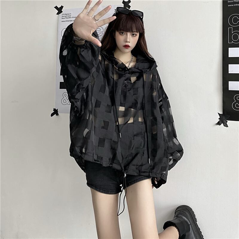 サマートップス ルーズカラーフード薄手コート ロング ストリート 夏物 Brother_is_Style76242829610