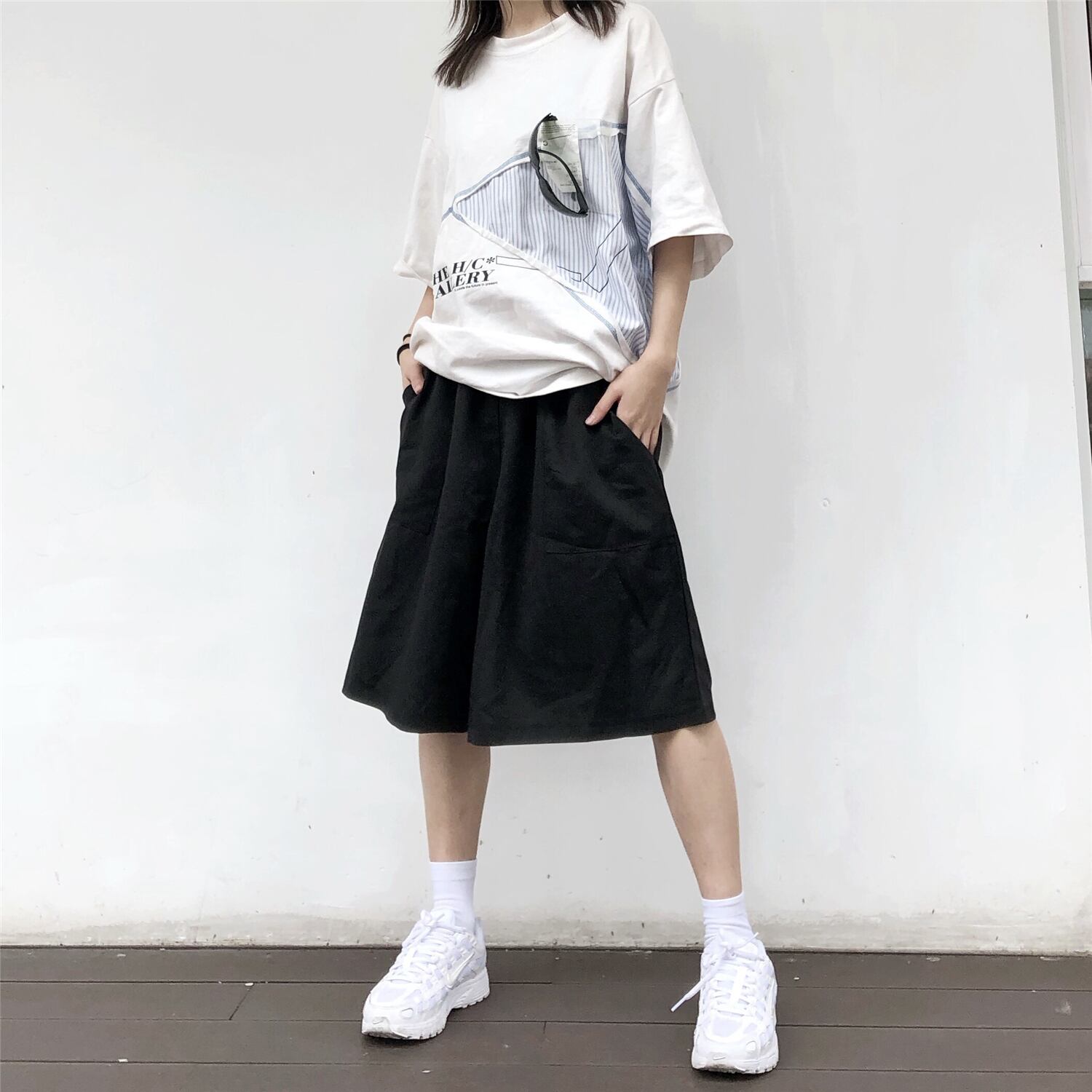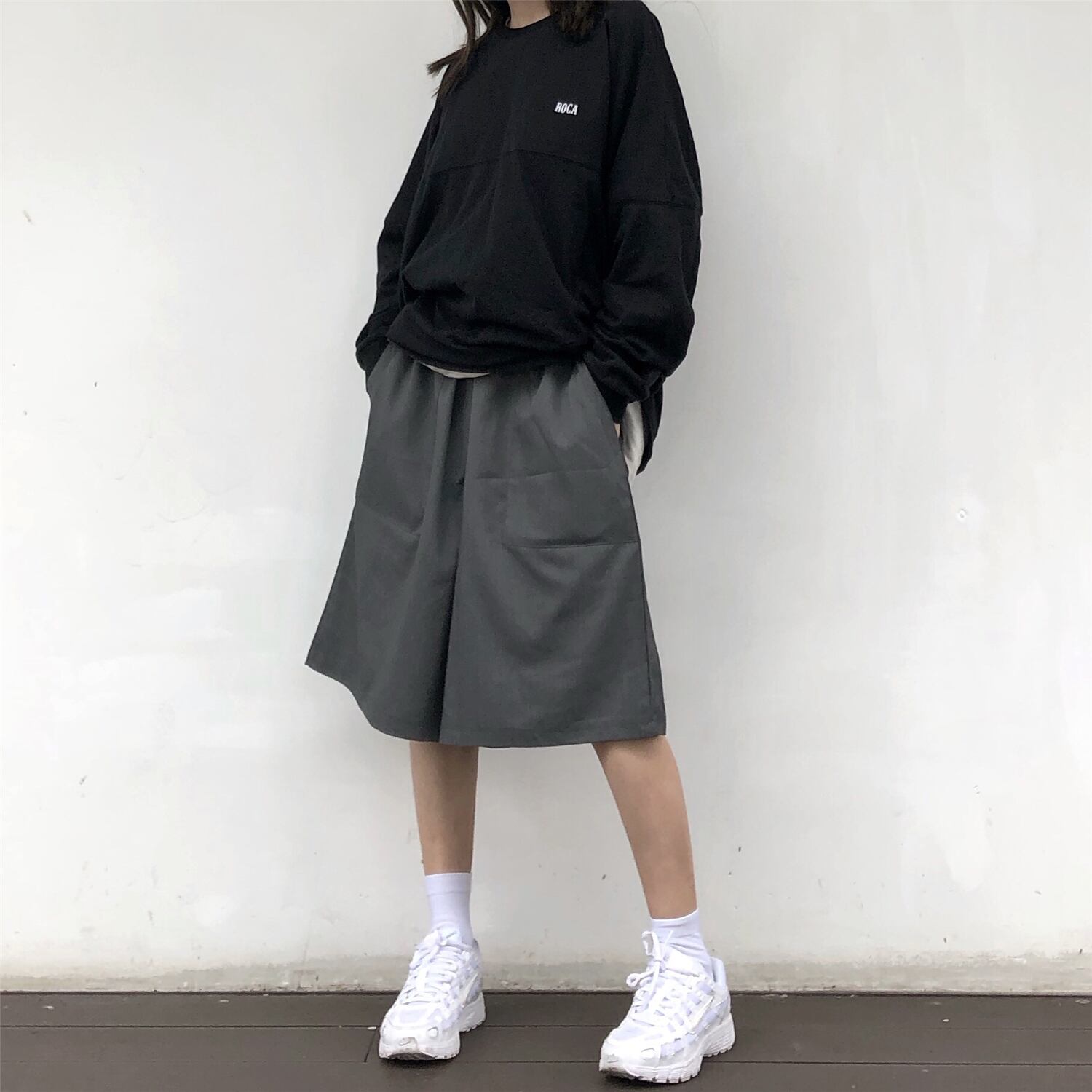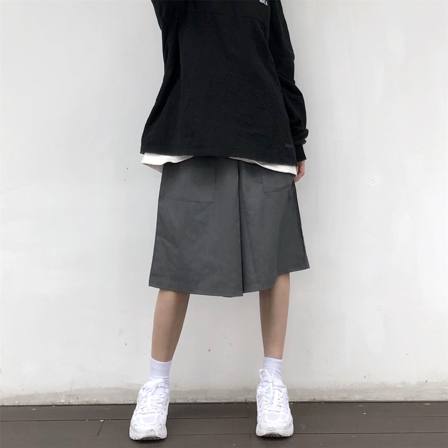 パンツ サマーダークカジュアルルーズハイウェストウェストワイドレッグショーツ 夏物 ブルマー ワイドパンツ Brother_is_Style79268009135